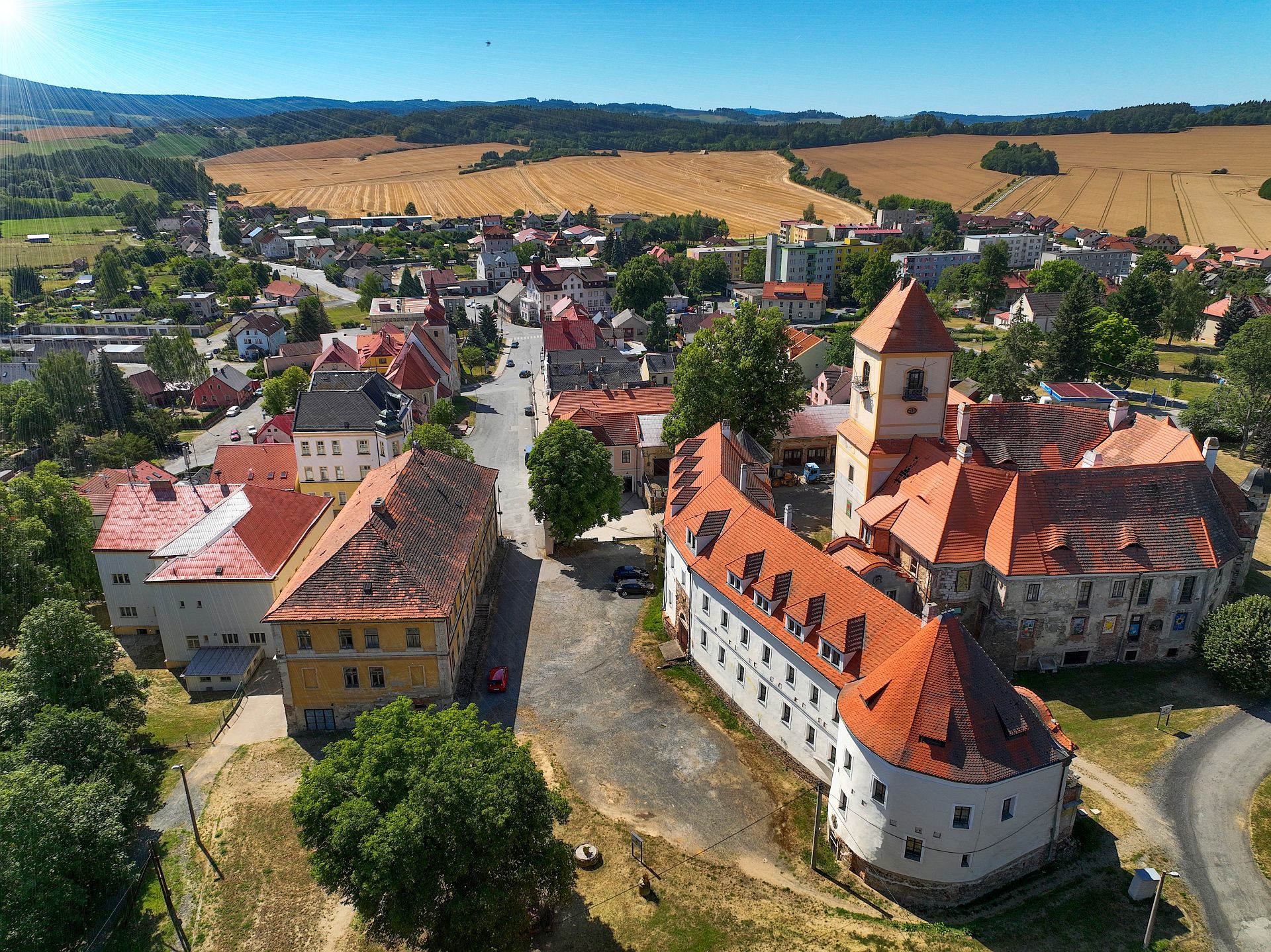 Das Schloss Poběžovice steht auf einer leichten Anhöhe in der Mitte des heutigen Stadtgebiets.