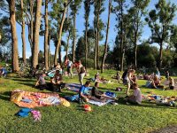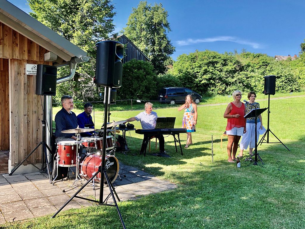 Das Centrum Bavaria Bohemia (CeBB) hat mit der Einladung zum Picknick mit Musik im Grünen die passende Antwort auf Veranstaltungseinschränkungen in Corona-Zeiten gefunden. Bavaria Bohemia e.V. Vorsitzende Irene Träxler und Veronika Hofinger, Leiterin des CeBB, freuten sich über die gut hundert Gäste, die es sich auf der Liegewiese breit verstreut im Moorbadareal richtig gut gehen ließen. Viele Familien waren gekommen, denn für die Kinder war es ideal, zwischen Liegewiese, Moorbad, Spielareal und Kiosk hin und her zu wechseln. Eine Augenweide war die kulinarische Vielfalt, die sich auf den Decken ausbreitete. Bunte Salate und rohe Gemüsestreifen, Käse in vielen Variationen, Salami, Brot und sommerliche Kuchenkreationen waren zusätzliche Farbtupfer zu beschwingten Kleidern als passendes Outfit für einen warmen Sommerabend. Nicht wenige gingen schnabulierend durch die Reihen, um aus Nachbars Picknickkorb zu kosten.