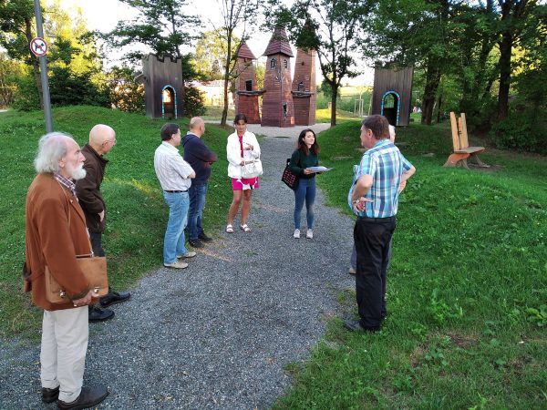 Mit den Stammtischgästen begab sie sich auf böhmischen Spuren, die sie vorab sehr fundiert recherchierte. Die Vorbereitung auf den Rundgang war für Veronika eine gute Gelegenheit, mehr über ihren neuen Arbeitsort zu erfahren. Vom CeBB, dem ehemaligen Kommunbräuhaus und seinem böhmischen Gewölben im ehemaligen Sudhaus und dem Gärkeller ging es der Ascha entlang, sie führt als Weißbach eine kurze Strecke über tschechisches Gebiet, zur Schönseer Stadtpfarrkirche St. Wenzeslaus. Hier der Bezug zum Nationalheiligen Böhmens und zum doppelten Nepomuk, der demnächst gegenüber vom CeBB auf der Freifläche vor dem Zäch-Haus einen neuen Standort bekommen soll. Weiter ging es zum Klöppeltrafo, der gute Gelegenheit bot, über die böhmischen Wurzeln des Spitzenklöppelns im Schönseer Land zu berichten. Abschließend dann beim Moorbad an der Böhmerwaldstraße und am Beginn des Steigs nach Stadlern ein paar Anekdoten zu den Paschern. Sehr bedauert wurde, dass heuer das Freilichtspiels “Pascher – die Nacht der langen Schatten” Corona zum Opfer fiel. Einige der Stammtischgäste ergänzten mit viel Wissen beim Rundgang die Schönseer bayerisch- böhmischen Wechselbeziehungen. Nach der Stunde Spaziergang freuten sich alle auf das Sitzen in der Freiluftstammtischrunde. Ein Prost galt Veronika, die sich mit dem geschichtlichen Thema hervorragend eingeführt hat.alle auf das Sitzen in der Freiluftstammtischrunde. Ein Prost galt Veronika, die sich mit dem geschichtlichen Thema hervorragend eingeführt hat.
