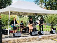 Die Band „Adys“ aus Klatovy (Klattau) setzte zwischen Nachmittag und Abend musikalische Akzente mit dem unverwechselbar klingenden und ziemlich heavy daherkommenden Sound tschechischen Poprocks. Die vier Musiker, obwohl erst seit zwei Jahren zusammen, traten letztes Jahr bei einigen der bekanntesten tschechischen Musikfestivals auf. Bei „Ahoj CeBB“ hatten sie Titel aus ihrem in diesem Frühjahr aufgenommenen Debütalbum Naděje (Hoffnung) dabei. „Was macht man sonst in Corona-Lockdown-Zeiten, wenn die Gigs gecancelt werden. Dann verbringt man als Band die Zeit im Studio zur Plattenproduktion“ meinte der Bandleader der sympathischen Gruppe, die nach dem Schönseer Auftritt zu urteilen, noch Karriere machen wird.