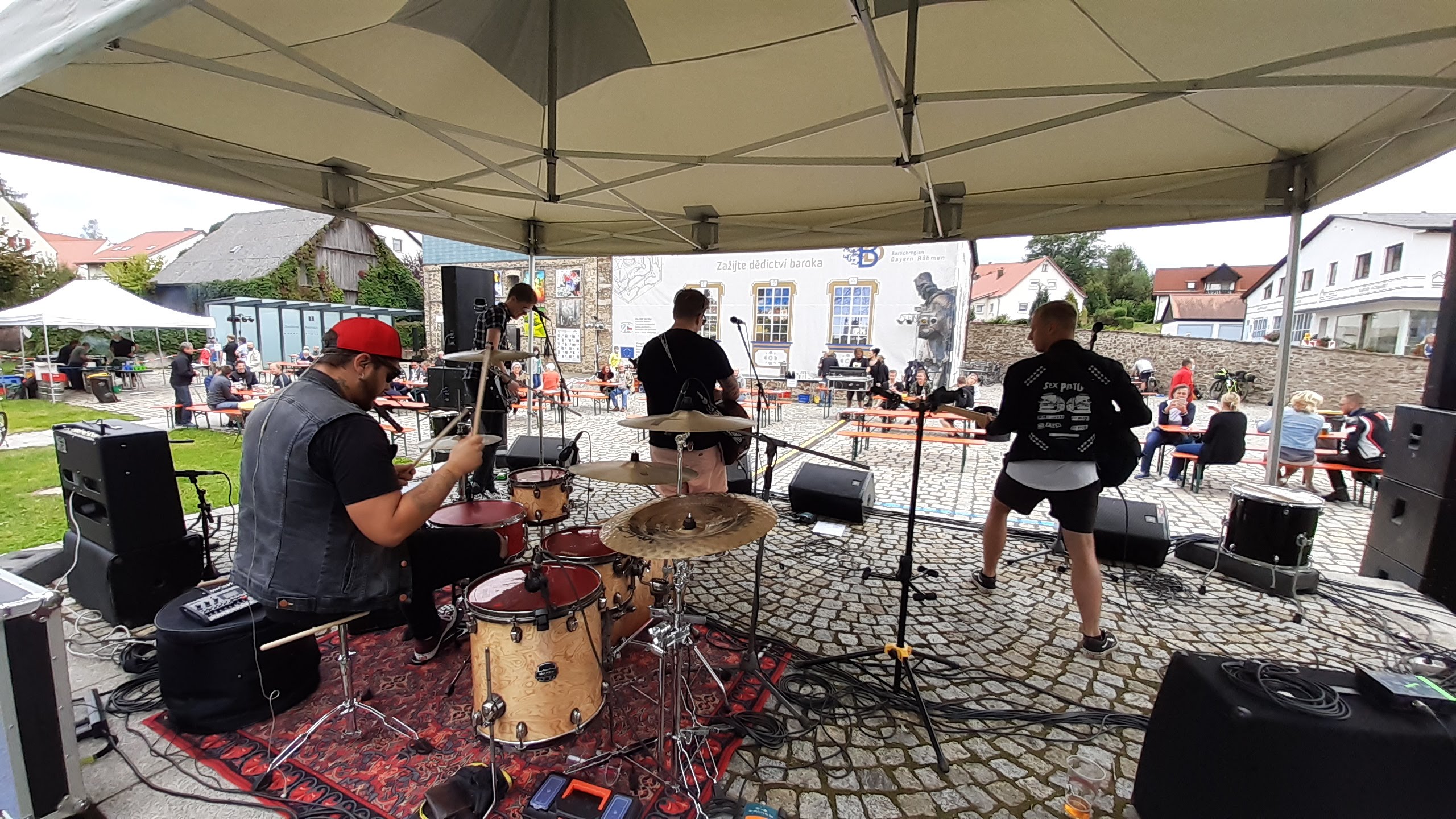 Als die Anmeldungen per Mail auf viele Gäste schließen ließ, stand die Ampel auf Grün für die erste größere Publikumsveranstaltung des Centrum Bavaria Bohemia (CeBB) in diesem Jahr. Das Wetter spielte gottseidank mit, da stand am letzten Sonntagnachmittag der pünktlichen Eröffnung von „Ahoj CeBB“ als Open-Air auf dem Vorplatz des ehemaligen Kommunbräuhauses nichts im Wege. Mit zwei Bühnen, Getränke-, Kaffee- und Schmierkuchenstand von Bavaria Bohemia e.V., der vom Freizeitzentrum in Rybník bewirteten Grillstation plus böhmischem Bier vom Fass und korrekt auf Abstand aufgestellten Biergartengarnituren war alles bestens angerichtet, als CeBB-Leiterin Veronika Hofinger die Gäste begrüßte, voran Irene Träxler und Gabi Dlubal, 1. und 2. Vorsitzende des Trägervereins Bavaria Bohemia e.V., die mit ihrem ehrenamtlichen Team den ganzen Tag im Einsatz waren.