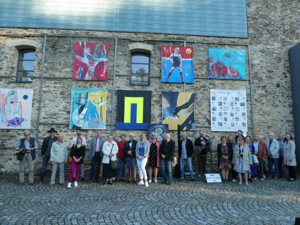 Am Donnerstag eröffnete die Open-Air Galerie mit We von Künstlerinnen und Künstlern aus den beiden Nachbarregionen Pilsen und Oberpfalz. Heuer zum Thema „Jugend“ in diesem von Deutsch-Tschechischen Zukunftsfonds (DTZF) geförderten Projekt unter Federführung der Union der Bildenden Künstler der Region Pilsen (UVU) und dem Centrum Bavaria Bohemia (CeBB) als bayerischen Partner. „Farbe auf der Straße“ ist ein lebendiger, vom breiten Publikum „im Vorbeigehen“ mitnehmbarer Kunstgenuss, bei dem keine Türschwelle hindert. Die künstlerische Umsetzung der Gedanken zur Jugend war für die Mitglieder der UVU Pilsen und für die Künstlerinnen und Künstler auf bayerischen Seite von Weiden über Blaibach bis Regensburg eine Herausforderung, denn Kuratorin Květa Monhartová gab bei ihren einführenden Worten ehrlich zu, dass die meisten der Kunstschaffenden, die ein Kunstwerk beitrugen, die Jugend vom Lebensalter her schon hinter sich haben. „Die Bilder entstanden bei ihnen aus der Erinnerung. Der Blick zurück oder von der älteren Generation auf die heutige Jugend ist äußerst spannend, wie die Bilder zeigen“. Irene Fritz, 1. Vorsitzende des Oberpfälzer Kunstvereins Weiden (OKV), selbst mit dem Bild „Millionen Wege“ vertreten, animierte als Leiterin der Jugendkunstschule Kunstbau Weiden fünf Schülerinnen des Jugendateliers, ihre Gefühle beim Thema Jugend mit dem Pinsel auf die Leinwand zu bringen. Es entstanden vier Arbeiten mit sehr viel Hintersinn mit den Titeln „Brain blow“ (Paula Grötsch), „Youth sprayer“ (Kiara und Mila Reber), „In Erinnerungen baden“ (Paige Bauer) und „Ohne Titel“ (Sophie Gipson). Sie bilden jetzt bis zum 3. November die Kunstfront an der Nord-West Ecke des CeBB.