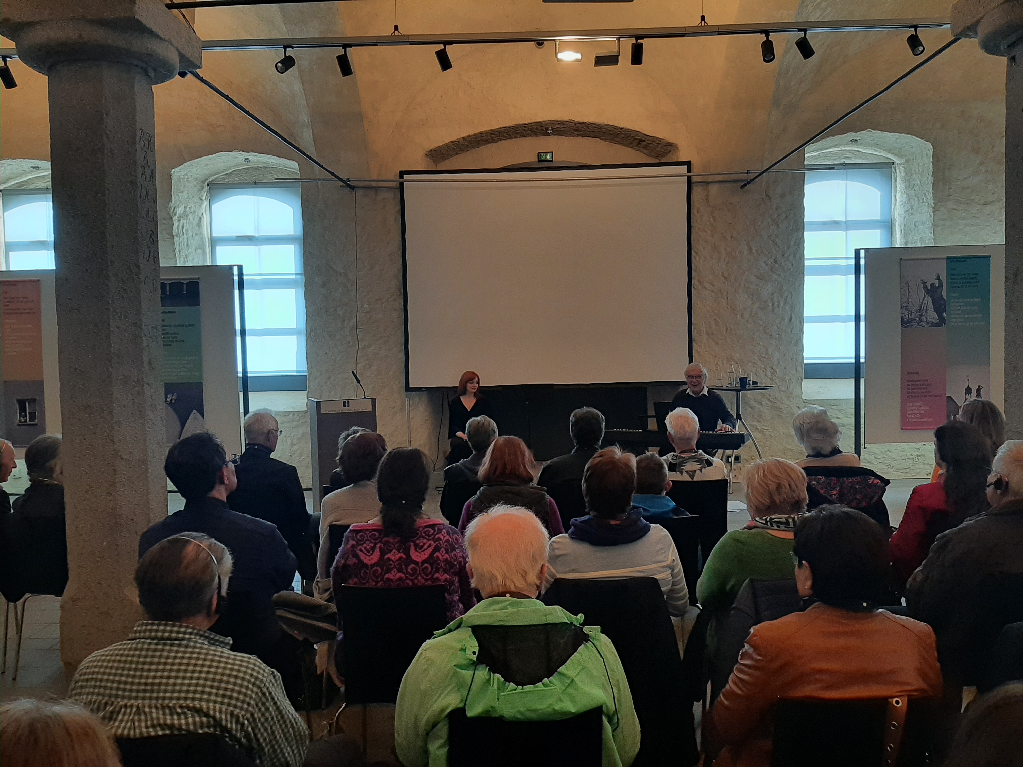In der historischen Gewölbehalle des ehemaligen Kommunbräuhauses nehmen beide unter dem Titel „Liebe die Wahrheit“ das begeisterte Publikum mit auf eine Reise durch acht Jahrhunderte deutsch-tschechischer Geschichte, Kunst und Musik. Es ist ein großer Bogen, den Daniel Dobiáš mit seinen Kompositionen spannt. Das Nibelungenlied, mittelalterliche Liebeslyrik, Troubadurengeschichten, ein Gedicht von Martin Luther, die Verbindungen zwischen Johannes Brahms und Antonín Dvořák, der in Prag geborene Dichter Rainer Maria Rilke sind darunter. Der Reigen schließt sich mit dem 20. Jahrhundert: Prag öffnet die Türen für Literaturnobelpreisträger Thomas Mann, der vor den Nationalsozialisten wie viele andere ins Nachbarland flieht. Ein paar Jahrzehnte später gewährt 1969 umgekehrt Deutschland vor den Kommunisten geflohenen Tschechen Asyl. Die Verbindung von Gesang mit den rezitierten Texten der Kompositionen, die simultan übersetzt werden, macht die Stunde zu einer abwechslungsreichen Zeitreise. Die Gäste sitzen ganz nah dran an den beiden Interpreten – sie erleben, wie Kristina Kubová ihre wunderbare Stimme einsetzt, auch mal einen Blick zu Daniel Dobiáš wirft und die Übergänge moderiert. Der Schlussapplaus nach der Zugabe, als sich zur Textzeile Fuj, fuj, fousy das Publikum mit den beiden Musikern zum vielstimmigen Chor vereint, zeigt einmal mehr, welche Vielfalt die Menschen beider Nachbarländer verbindet.