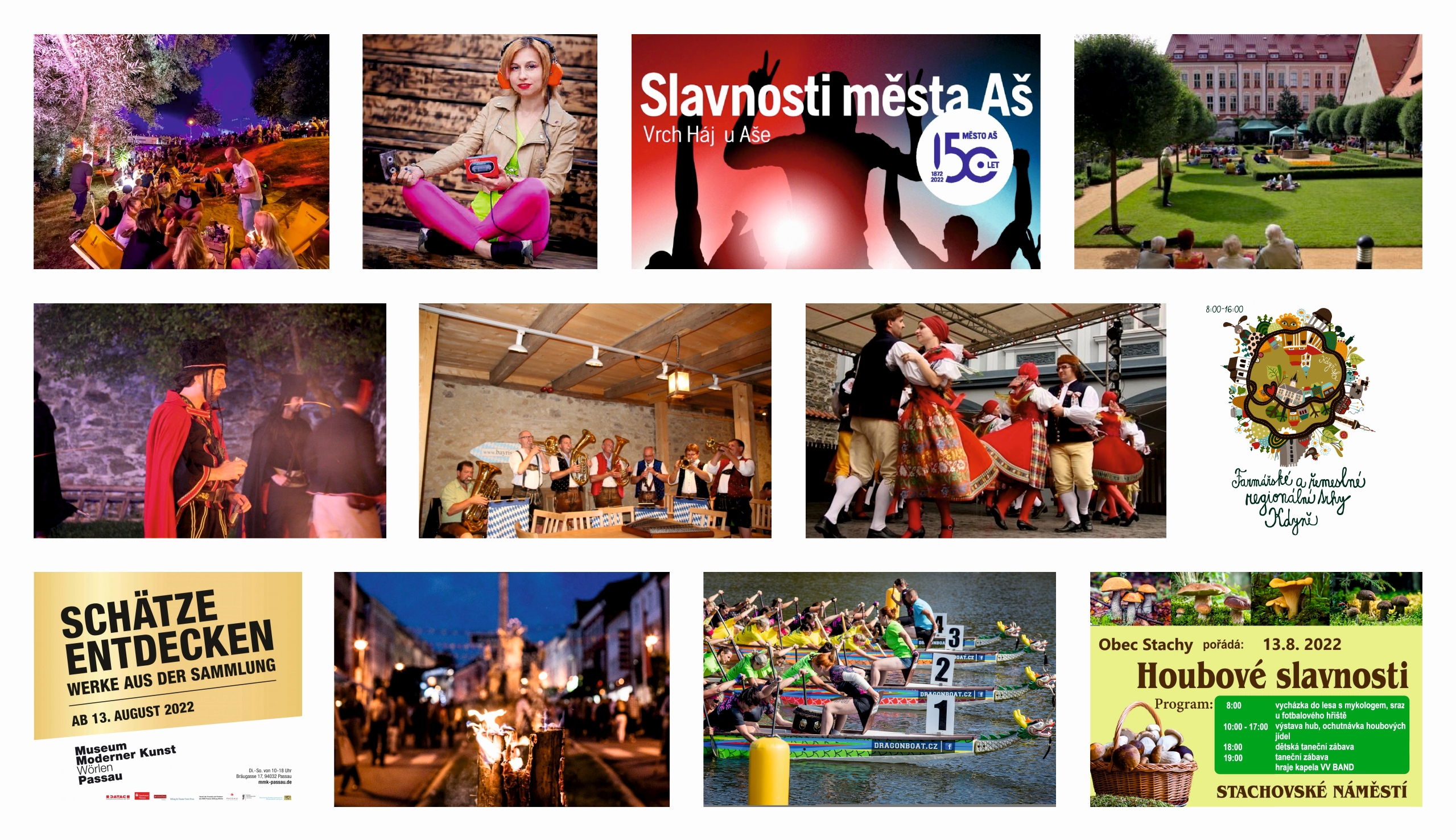 Das Wochenendfest von Aš ist eines der größten kulturellen Ereignisse in der Karlsbader Region. Alle Besucherinnen und Besucher können sich am Freitag, 12. August 2022 um 12.00 Uhr auf ein reichhaltiges Kulturprogramm und eine volle Musikbühne freuen. Auf der Bühne werden große Namen der tschechischen und slowakischen Musikszene auftreten wie Pokáč, Čechomor, Michal Hrůza, Kpt. Demo No Name oder Tereza Mašková.
