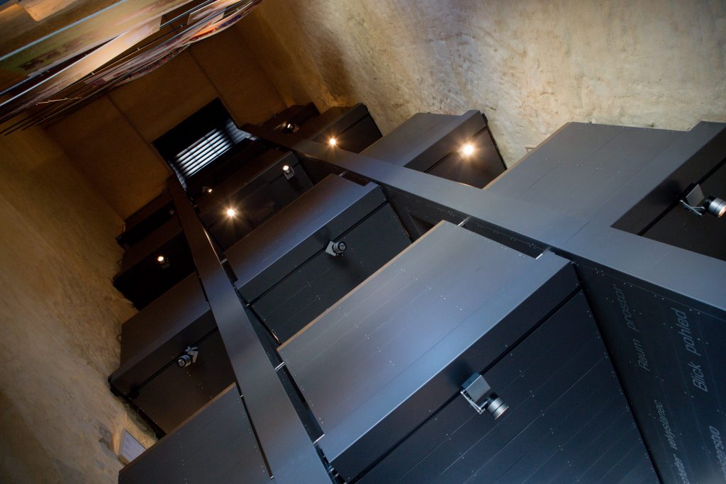 Protože budova neposkytovala dostatečný prostor pro ctižádostivý program centra, bylo nutné ji rozšířit. Architekti propojili nástavbu s konstrukčně rafinovaným statickým zabezpečením: pokrokový princip dům v domě, kdy do budovy byla zasunuta nahoru vyčnívající železobetonová bedna, bezespárově přibetonována ke zdi a dodatečně ukotvena pěti nerezovými kotvami na každý metr čtvereční. Přečnívající betonové stěny byly překryty deskami z recyklovaného skla, na které byly dále přilepeny barevné, potištěné, skleněné desky velikosti 150 x 30 cm. Peter a Christian Brücknerovi ztvárnili sklo jako zděnou konstrukci. Architekti nalezli v Schönsee v místním podnikateli pokrokového a schopného partnera, který pomocí opakovaného sítotisku nanesl na skleněné desky fotografické abstrakce vrstveného skla. Hladký, téměř bezespárový, skleněný povrch se svým monolitickým půvabem jeví jako moderní pokračování kamenného zdiva. Skleněné obložení se uvnitř opakuje na krytech vypínačů a přes den je dalším viditelným znakem modernizace budovy.