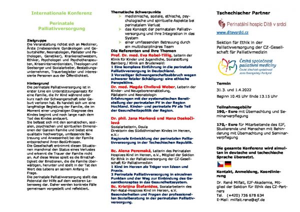 Perinatální paliativní péče představuje potenciál pomoci na další cestě životem. Budou proto představeny a společně reflektovány konkrétní případy.
