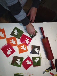 Ve dvou časových úsecích (14:30 až 16:00 hod. a 16:00 až 17:30 hod.) si rodiče a děti mohou společně vytisknout vánoční pohlednice nebo vlastní balicí papír. V průběhu tohoto procesu vznikne v rámci týmové práce mnoho nápadů na motivy, tvary a barvy.