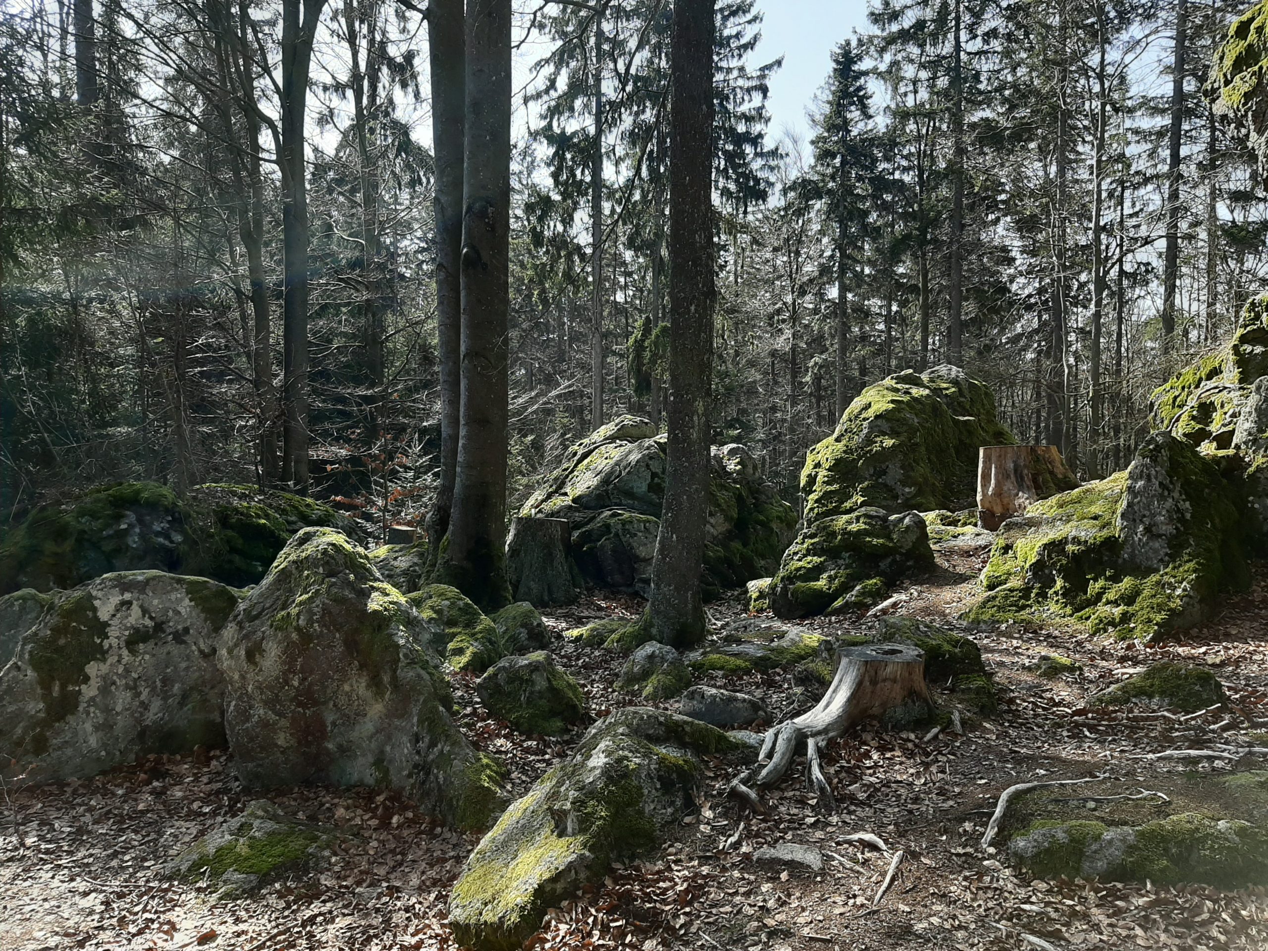 Delší trasa nás zavede dále k zajímavé přírodní památce v lesích severovýchodně od Jedliny /Neulosimthalu; podél menších žulových skal nad bývalou Kollerovou chatou, které se říkalo Mušlova chata. Podle legendy se tam ukrýval loupežník Mušle. Výlet pak vede zpět do Staré Knížecí Huti.