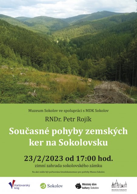 Při setkání v zimní zahradě sokolovského zámku se autor pokusí lidskými slovy, na obrázcích a konkrétních příkladech ukázat, jak se tektonické napětí v geologické přítomnosti promítá do pohybů zemských ker a mineralizačních procesů. Stopy pohybů ker čteme nejen v laboratoři, ale i v terénu – v kamenolomech, dolech, skalních výchozech a rašeliništích. Promítají se i do reliéfu krajiny a struktury osídlení. Většina terénních pozorování dosud nebyla publikována.