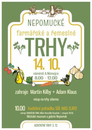 Potravinový a řemeslný trh s živou hudbou (Martin Kilby a Adam Klaus) a hudební pohádkou Sůl nad zlato (zahraje divadélko DINO, Milan Benedikt Karpíšek)