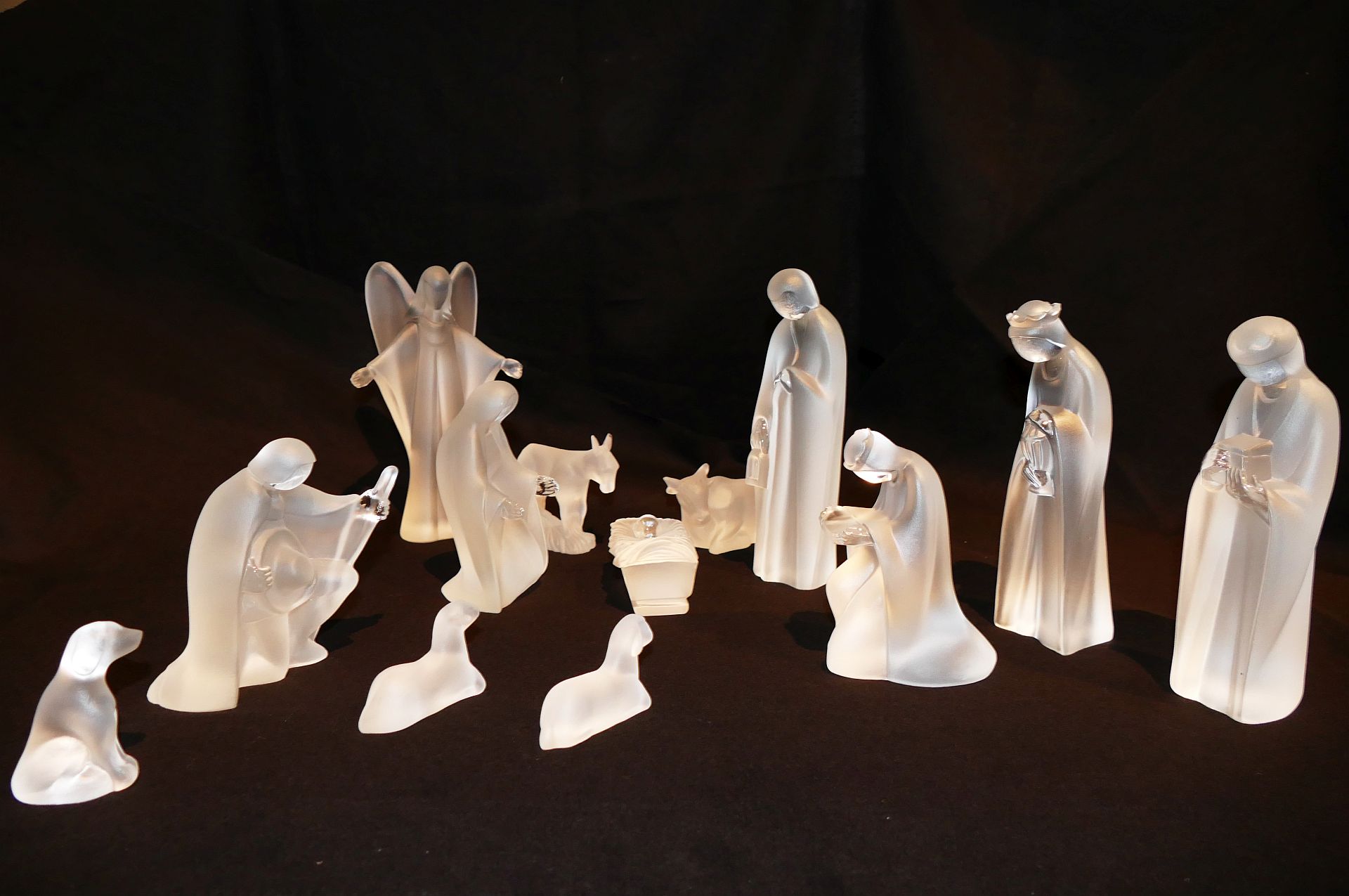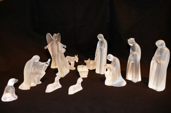 Skleněný betlém od Josefa Schreindla. Tato skleněná postýlka byla vyrobena v 90. letech 20. století v dílně na výrobu olovnatého křišťálu F.X. Nachtmann, která provozovala sklárny v Riedlhütte, Spiegelau a Frauenau. Figurky byly vyrobeny na zakázku pro zákazníka ve Spojených státech, který je prodával pod vlastní značkou.