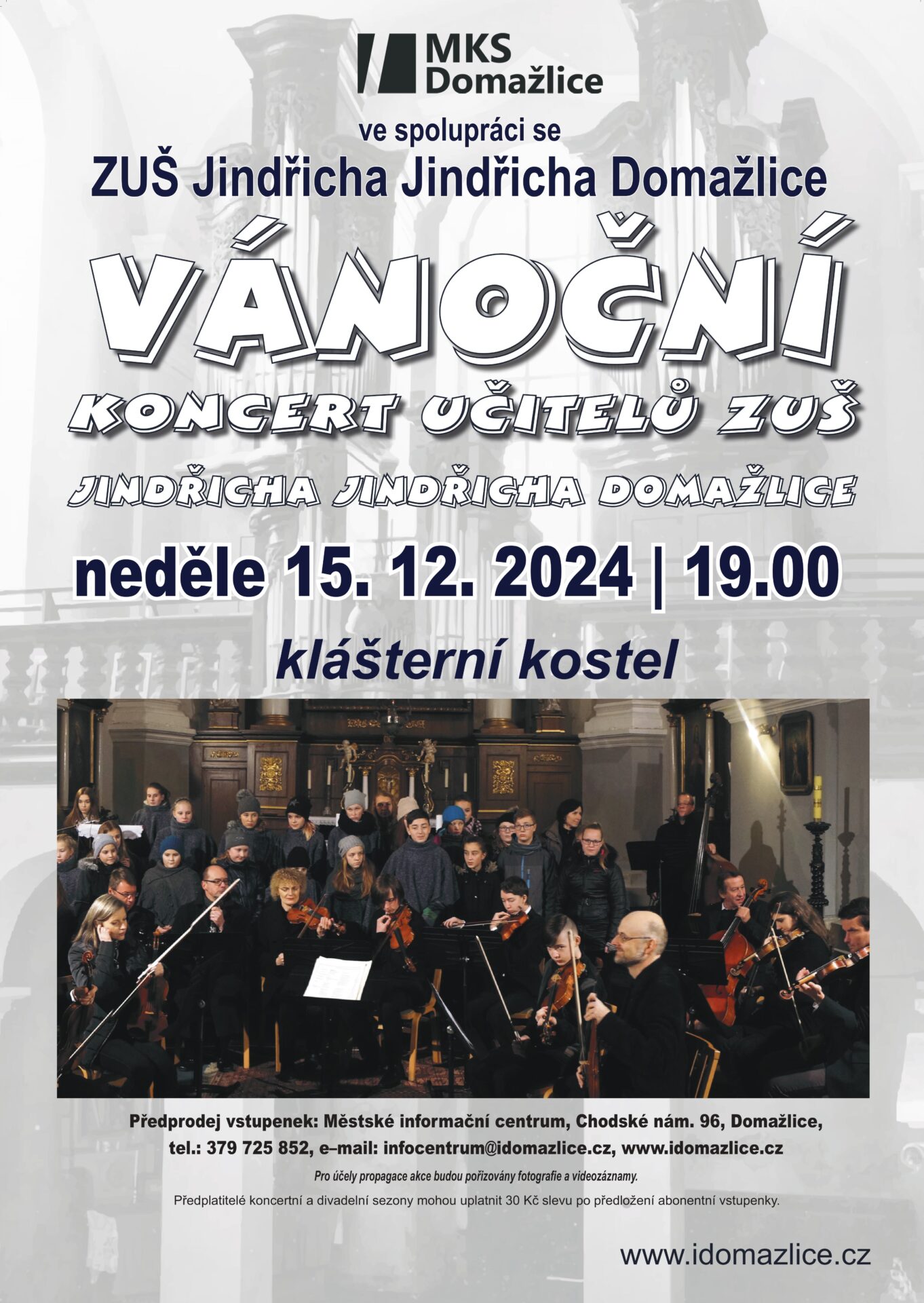 Tradiční vánoční akce v klášterním kostele. Představí se učitelé místní Základní umělecké školy Jindřicha Jindřich a v Domažlicích.
