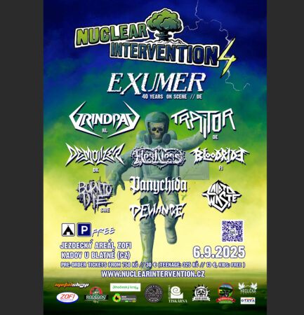 Jezdecký areál ZOFI v Kadově u Blatné bude hostit již čtvrté vydání převážně thrashmetalového festivalu Nuclear Intervention. Místo koní bude 6. 9. 2025 ustájeno deset kapel, které by měly pobavit několik stovek lidí oblečených do bojových vest. Pro velký úspěch předešlých ročníků se fanoušci mohou těšit na zvučného headlinera. Však považte, EXUMER z Německa na scéně slaví čtyřicet let a jejich legendární debut „Possessed By Fire“ vycházel v době, kdy na pulty šly takové skvosty jako „Pleasure To Kill“ či „Eternal Devastation“.