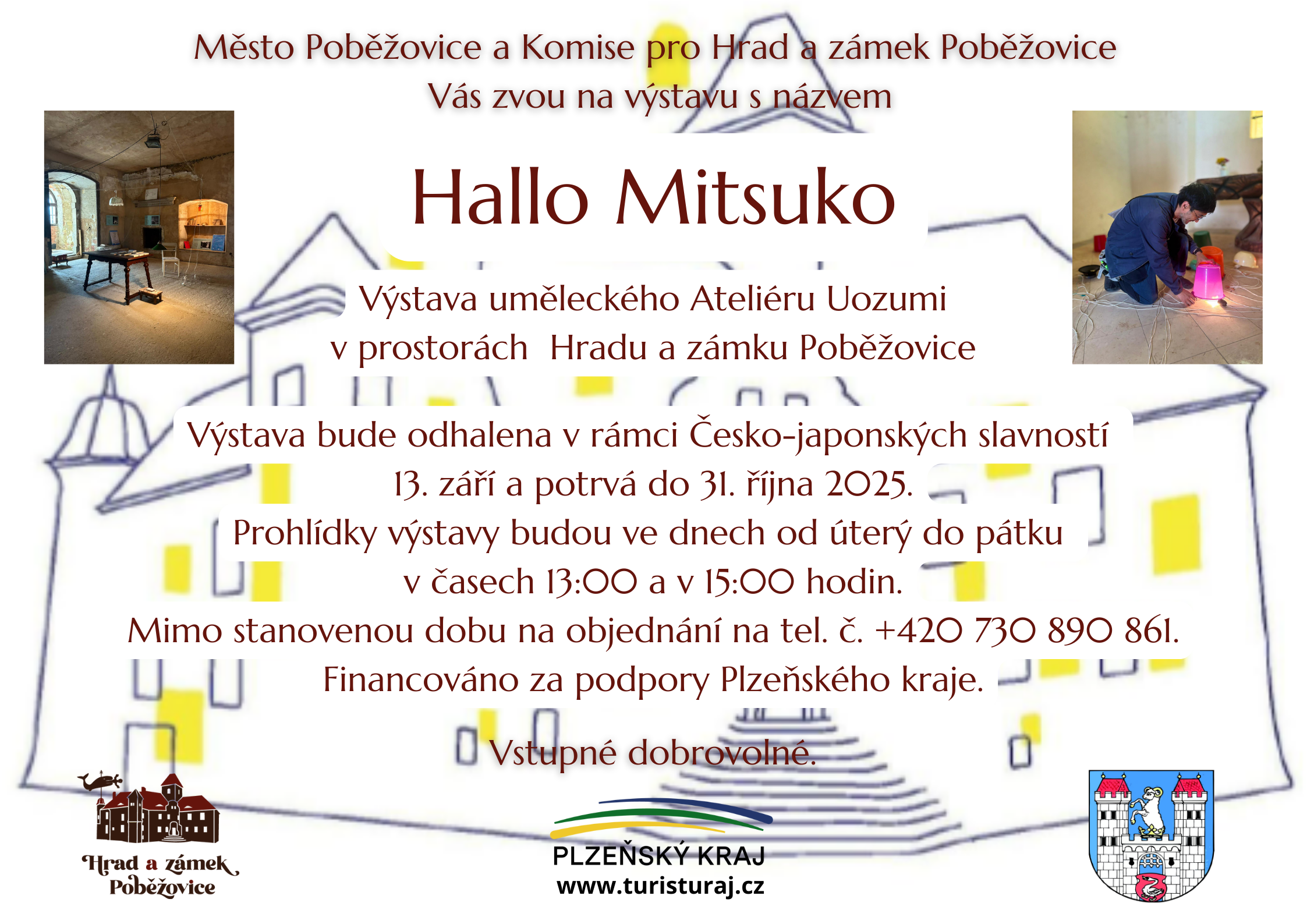 Město Poběžovice a Komise pro Hrad a zámek Poběžovice vás zve na výstavu s názvem Hallo Mitsuko, která bude odhalena v rámci Česko-japonských slavností na zámku v Poběžovicích