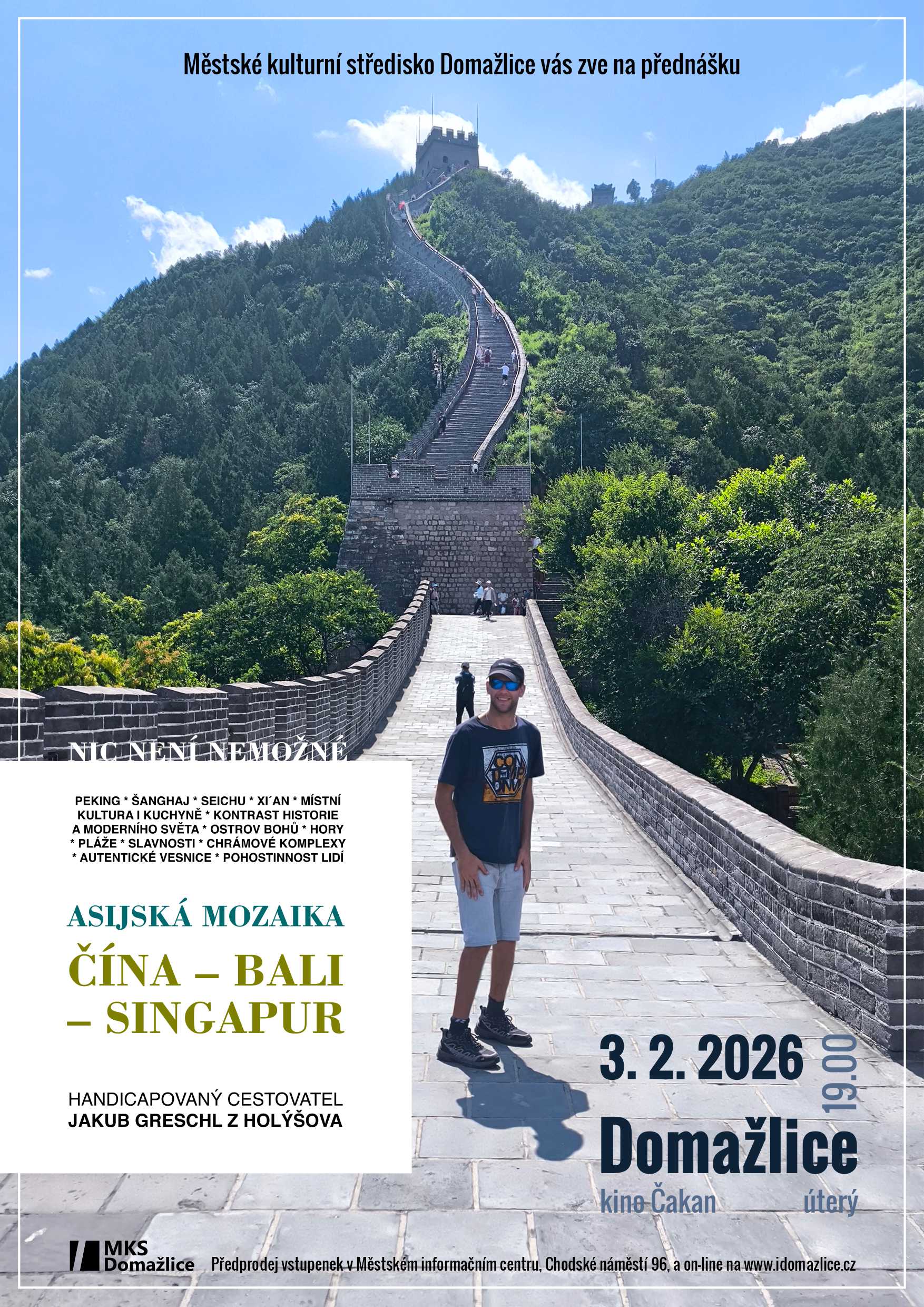 Cestopisná přednáška cestovatele z Holýšova z cyklu Cestování s handicapem aneb Nic není nemožné nás zavede na asijský kontinent.