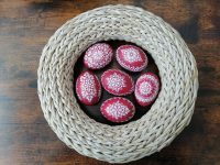 Alena Mrázková zdobí velikonoční vajíčka voskem a ovládá také techniku madeirování, při které se do skořápek vrtají jemné vzory dírek. Tak vznikají malá umělecká díla. K vajíčkům se skvěle hodí také košíčky a misky, které vyrábí Lucie Kiliánová z novinového papíru. Hotové výrobky jsou buď barvené nebo lakované bezbarvým lakem a jsou díky tomu i voděodolné.