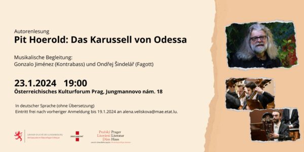 Pit Hoerold představí svou knihu básní a úvah Das Karussell von Odessa, v níž zpracovává téma současné války na Ukrajině. Čtení doplní hudební doprovod.