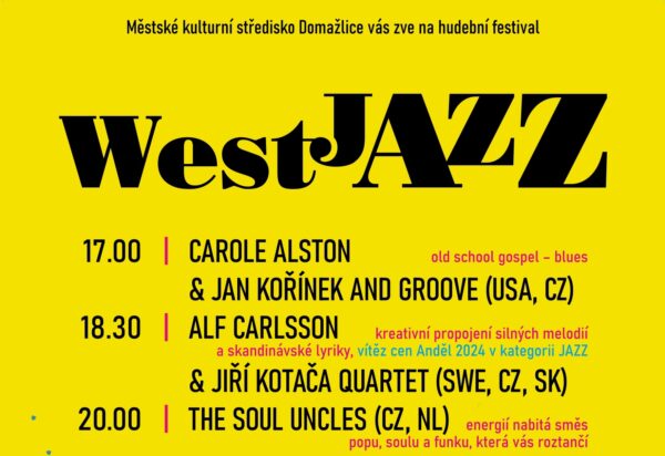 1. ročník letního open-air jazzového festivalu WestJAZZ nabídne významné jazzové hudebníky z ČR i ze zahraničí.