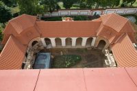 Východní ambit už stojí, krovy jsou hotové, stejně jako téměř všechny klenby. „Dodělávají se omítky a střecha. Zbývá celá řada věcí, které se týkají interiéru a fasády,“ vyjmenovala ředitelka. Řemeslníci se co nejvěrněji drží tradičních technologií a materiálů. Zajímavostí je například takzvaná česká placka, která je typická pro tehdejší dobu. Zjednodušeně řečeno jde o barokní druh klenby.
