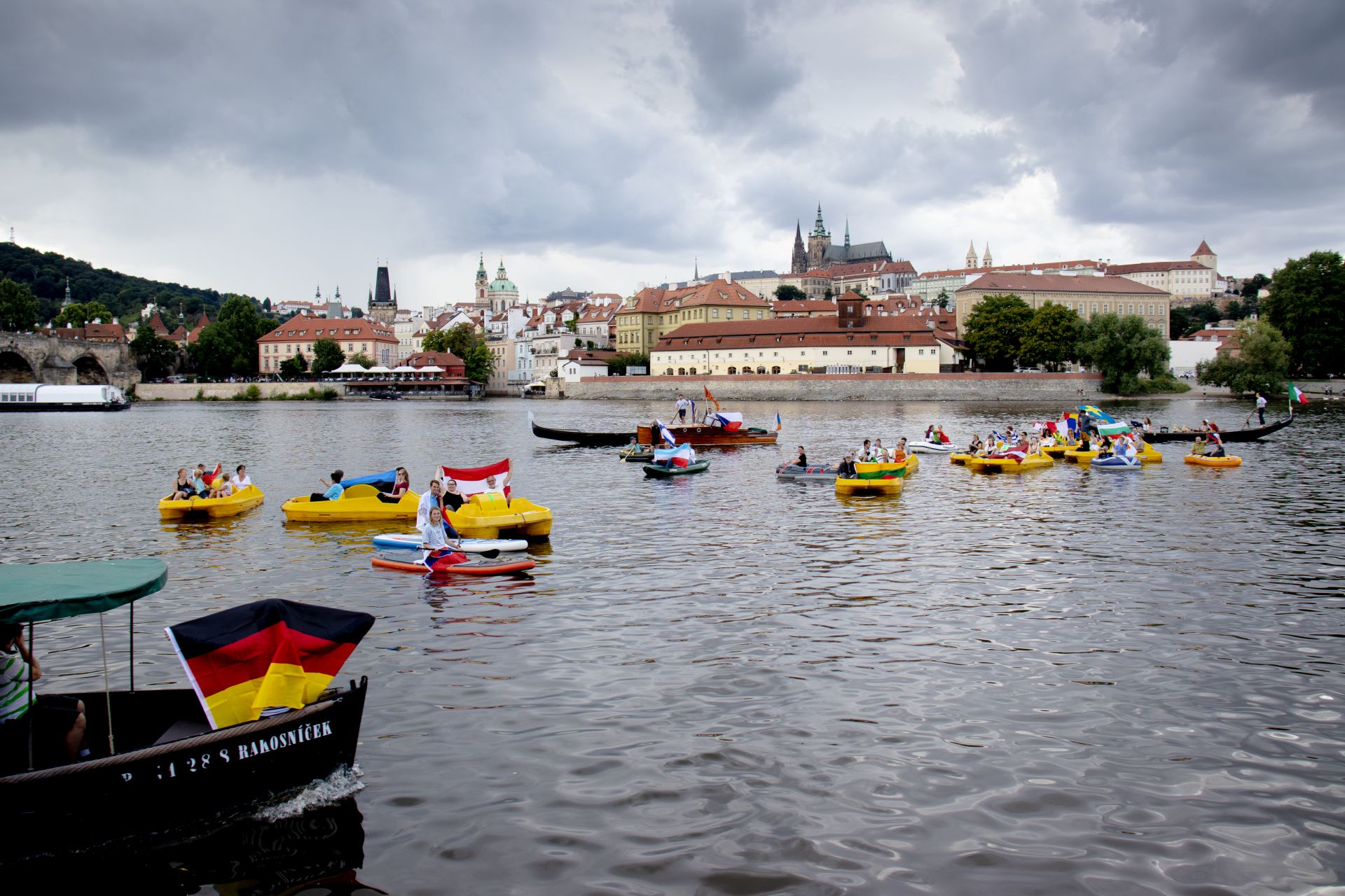 Předtím se mnozí po výzvě připojit se k “Happeningu na Vltavě” shromáždili na břehu řeky, aby připravili různé plovoucí objekty – nafukovaly se SUPy a nafukovací čluny, připravena byla italská gondola, motorový člun a několik šlapadel. Po krátké době bylo 27 vlajek rozebráno a bylo jasné, že akce bude úspěšná a že ministr zahraničí svou sázku prohraje. Na přístaviště se přišel osobně podívat ministr zahraničí, aby se přesvědčil, jak velkou událost postavila Ackermann-Gemeinde na nohy, respektive na vodu. Poděkoval organizátorům a řekl, že je rád, že sázku prohrál. Vsázka – sud Plzeňského Prazdroje – byla ihned poté naražena.