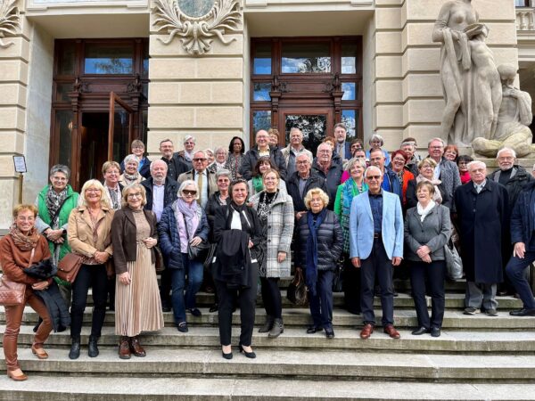 Kamila Spichtingerová využila cestu k tomu, aby účastníky již v autobuse naladila na návštěvu města a na připravený program. Tento kout Čech a svérázné lázeňské město si velmi oblíbil i Goethe. V dopise Wilhelmu von Humboldtovi z roku 1812 napsal: “Výmar, Karlovy Vary a Řím jsou jediná místa, kde bych chtěl žít“. A Alexandrovi von Humboldtovi popsal nádherné lázeňské centrum slovy: “Karlovy Vary jsou briliantem zasazeným do smaragdu“. A po naší návštěvě o tom nepochybujeme: Goethe ani Humboldt nepřeháněli.