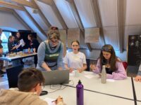 Ve druhé části workshopu se mladí lidé zabývali stavbou vynálezů, které mohou pomoci při katastrofě. K tomu dostali nejrůznější materiály, jako je dřevo, drát a látky. Vznikly působivé modely, jako například nádrž s vodním filtrem, improvizovaný větrný mlýn, nemocnice, most přes řeku nebo suchá toaleta. V rámci německo-českých jazykových her vznikla také další část německo-českého obrazového slovníku, který již mnoho let přibývá na webových stránkách KunstBETRIEB.