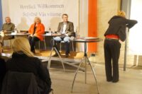 Pozvání CeBB na panelovou diskuzi přijal PhDr. Prokop Tomek, který ukončil doktorské studium obhajobou disertační práce na téma „Historie československé redakce Rádia Svobodná Evropa a její význam pro české dějiny“. Dalším účastníkem diskuze byla Ludmila Rakušanová, dlouholetá a jedna z nejoblíbenějších redaktorek československé redakce Rádia Svobodná Evropa. Jako třetí host diskuze přijel do Schönsee Martin Bachstein, který pracoval téměř 30 let na různých vedoucích pozicích v Rádiu Svobodná Evropa a umožnil díky svým zasvěceným informacím nahlédnout do zákulisí vysílání. Tématy diskuze byly politické záměry rádia, financování ze strany CIA, ohlas posluchačů v České republice, masivní zásahy rušiček, rešerše zdrojů, zaměření vysílání a redakční pracovní postupy.
