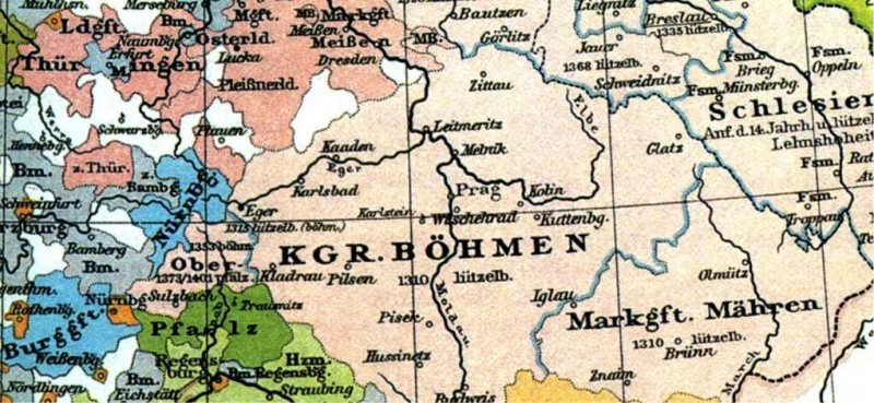 Po dobu necelých dvou generací, od roku 1353 do roku 1400, sahalo české teritorium za Karla IV. a Václava IV. až téměř k branám Norimberka – krátké intermezzo, ale lingvisticky do dneška významné. V této době se totiž, podle historika Jiřího Posmívala, dvojhláska “ou” vyvinula na společnou hlásku v češtině a hornofalckém nářečí; není ovšem jasné, zda “ou” putovalo ze západu na východ, nebo z východu na západ.