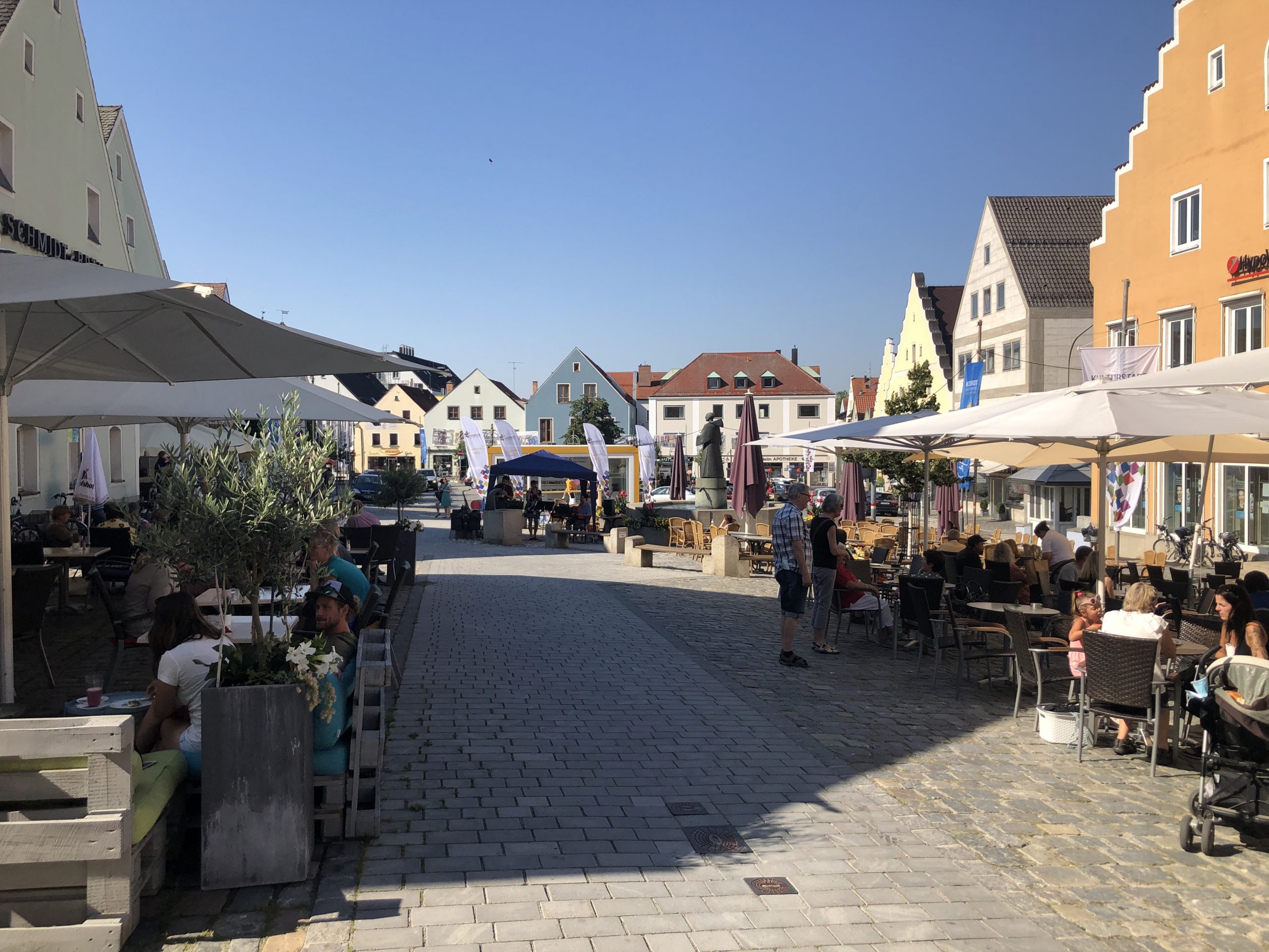 Pořadatelé z Centra Bavaria Bohemia si byli vědomi zvědavosti kolemjdoucích při výstavbě stanového pavilonu v centru města Schwandorfu. Poté, co se centrum města již týden předtím proměnilo v dějiště velkého množství koncertů, se mohli obyvatelé Schwandorfu v zářícím slunci těšit na hudební pobavení z Plzně. V exkluzivní poloze před pavilonem kulturního města a vedle kašny Mönchsbrunnen s výhledem na farní kostel sv. Jakuba zahrálo jazzové trio kolem hudebníků Zbyška Brůje (klarinet a saxofon), Barbory Brůjové (zpěv) a Marka Novotného (keyboard) mnoho světově známých písní. Klasiky jako „The Girl from Ipanema“, „Sunny“ od Bobbyho Hebba nebo balada „Michelle“ od Beatles se na náměstí Oberer Marktplatz postaraly o bujarou atmosféru.