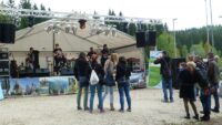 Festival na scéně na bavorské straně zahájila hudební skupina \”Soundcheck\” z Plzně, která již měla příležitost sbírat zkušenosti s česko-německými hudebními projekty. Následně přivítali starosta Georg Bauer (Bavorská Železná Ruda) a Michal Šnebergr (Železná Ruda) společně se spolupracovníky CeBB Sebastianem Lesňákem a Maikou Victor-Ustohal hudební fanoušky z obou zemí. Poté jsme na české scéně pokračovali s \”poctivým\” rock\’n\’rollem hudební skupiny \”Spotlight Brides\” z Zwieselu, která se před týdnem v Mnichově probojovala do finále soutěže Emergenza Bandcontest a hrdě mohla prezentovat své nové album. Po nich následovali \”Nixon Lads\” ze Strakonic v jižních Čechách se směsicí indie, popu a punku a skupina \”Shorelines\” z Horní Falce s tvrdšími metalovými tóny. Při vystoupení indie rockové hudební skupiny \”Groovetown\” z Karlovarského kraje se pomalu začalo stmívat, umělé osvětlení a mlha vytvořily skutečnou festivalovou atmosféru. Velice bujaře poté publikum na závěr tančilo při show skupiny \”Garage Inc.\” z Horních Frank.