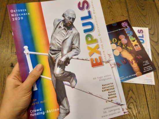 Deswegen hat Expuls jetzt eine Crowdfunding-Aktion gestartet, in der man sie unterstützen kann. Mehr dazu ist auf der Webseite von Expuls zu finden. Wir werden Expuls auch weiterhin mit unseren Veranstaltungshinweisen und Inseraten unterstützen und hoffen, dass dieses legendäre Magazin die jetzige Krise übersteht. Die nächste Ausgabe erscheint im Dezember und wird wie gewöhnt auch bei uns im Centrum Bavaria Bohemia auslegen.