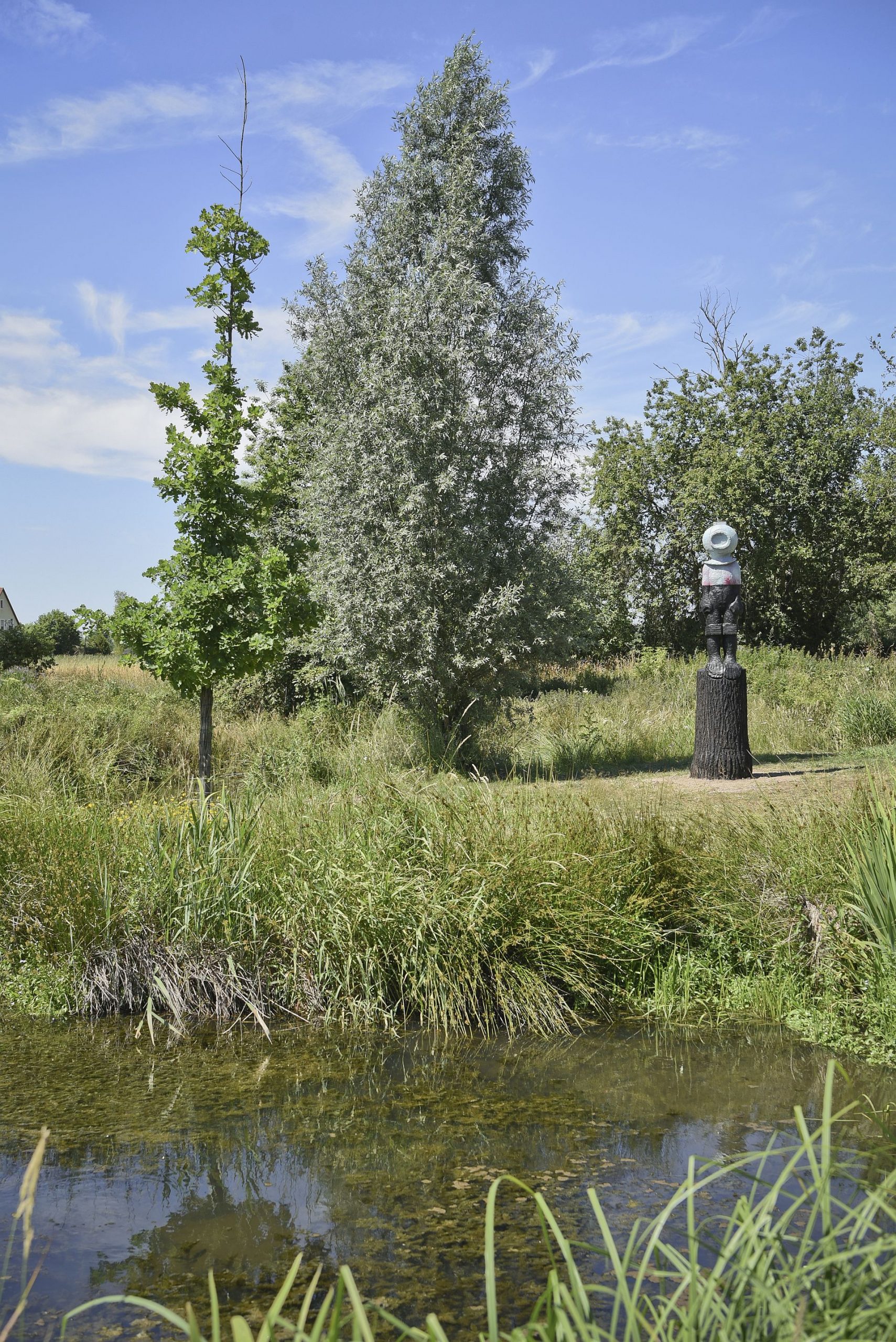 „To, co nás spojuje i přes státní hranice, jsou zásadní otázky, elementární témata. Socha „potápěče“, která váží tuny, se zaobírá rozpolceností mezi ochranou a omezováním, stejně jako otázkou, kým vlastně jsme za tou schránkou, kterou prezentujeme navenek. Nabarvená dřevěná skulptura nabízí mnoho asociací. I pronikání do námi neznámých a nových světů… duševně i tělesně. Tím se stává potápěč „psychonautem“, který opouští svůj obvyklý životní prostor nebo svou obvyklou smyslovou rovinu, aby se ponořil do jiného světa.“