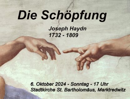 Koncert v městském kostele Sv. Bartoloměje v Marktredwitzu. Účinkují: Jana Daubner, soprán Erwin Feith, tenor Markus Simon, bas Fränkische Kammerphilharmonie Velký sbor z Marktredwitz Dirigent: Michael Grünwald, kantor…