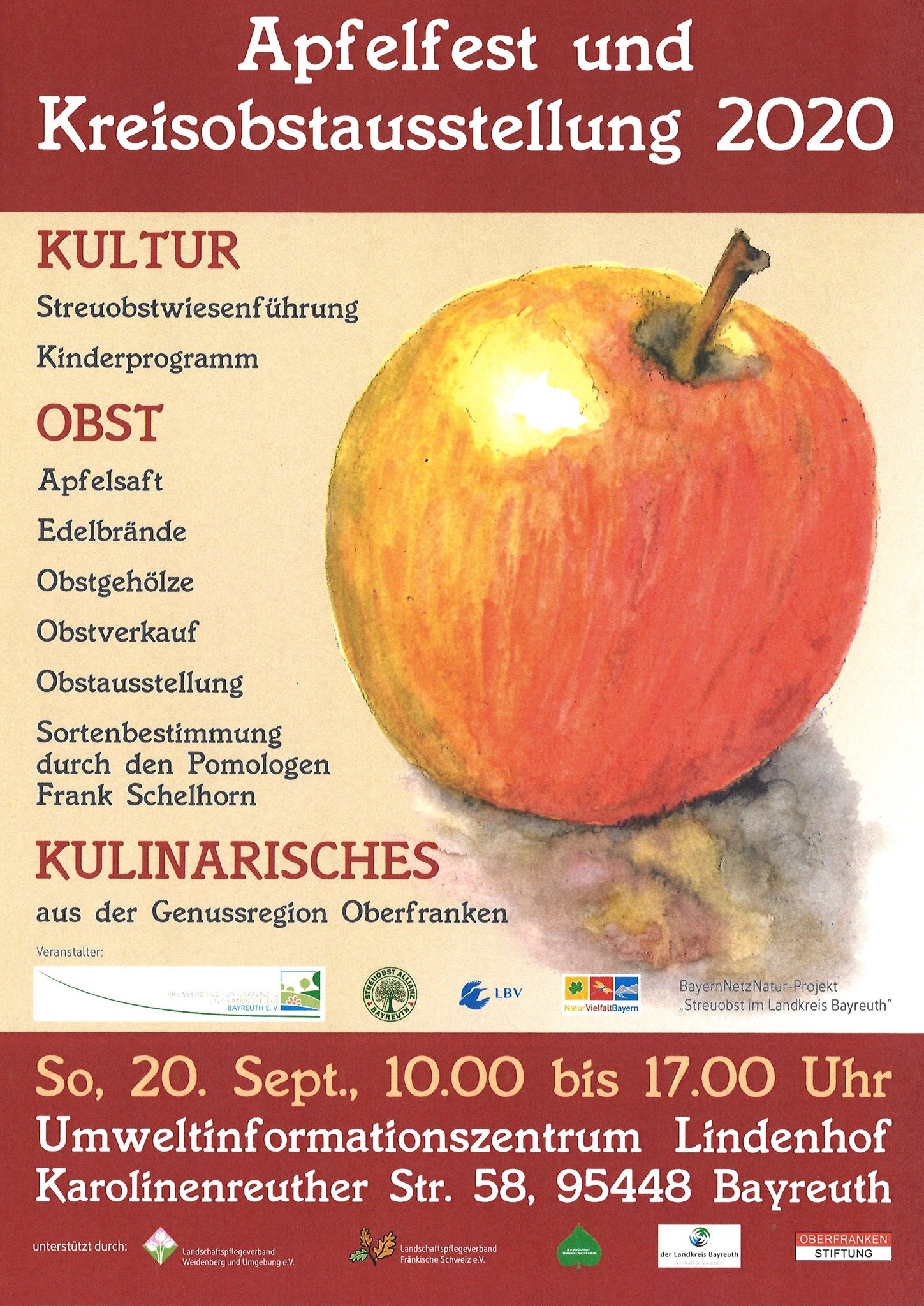Wie gewohnt werden die verschiedenen Obstsorten gezeigt, deren Anbau im Landkreis Bayreuth von Klima, Boden usw. her mit ausreichendem Erfolg möglich ist. Wenngleich der Schwerpunkt der Ausstellung bei Äpfeln liegt, werden auch Birnen, Quitten, Trauben, Nüsse, Wildfrüchte und anderes Obst ausgestellt, ebenso wie kranke Früchte, deren Merkmale beschrieben sind.