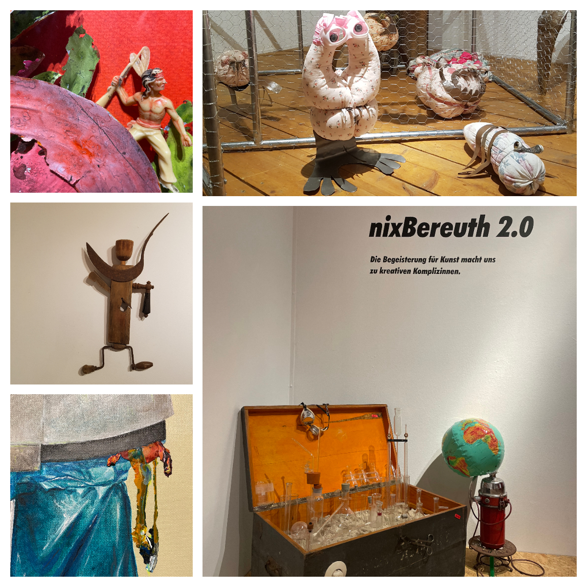 Das Gerätemuseum hat die beiden Bayreuther Künstlerinnen Katrin Schinner und Meike Goldfuss, die seit 2019 als Duo nixBereuth 2.0 künstlerisch aktiv sind, eingeladen, sich kreativ zu verwirklichen und aus nicht mehr genutzten Alltagsgegenständen Kunstobjekte zu schaffen.