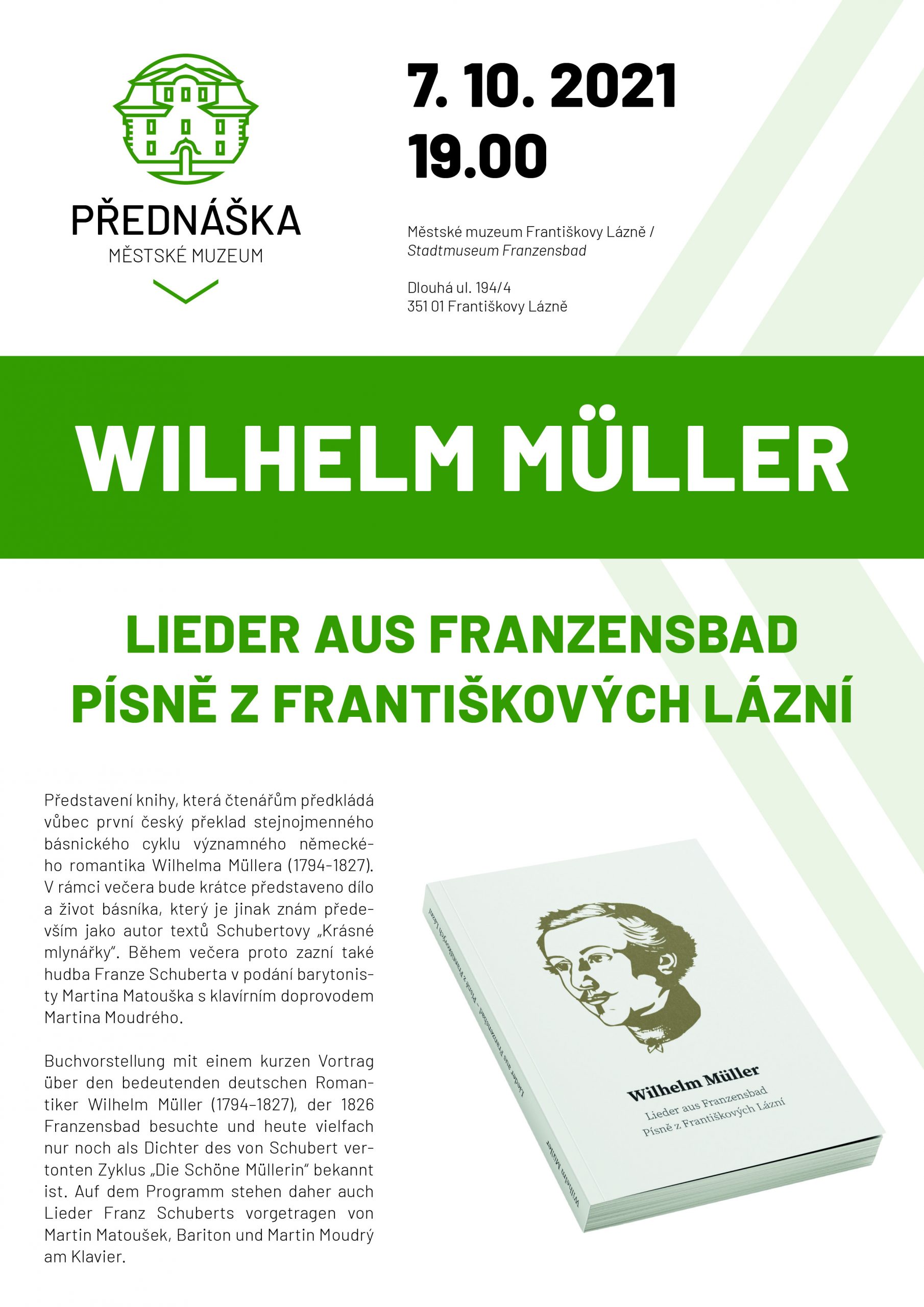 Buchvorstellung mit einem kurzen Vortrag über den bedeutenden deutschen Romantiker Wilhelm Müller (1794–1827), der 1826 Franzensbad besuchte und heute vielfach nur noch als Dichter des von Schubert vertonten Zyklus „Die Schöne Müllerin“ bekannt ist.