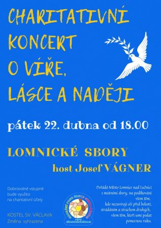 Das Benefizkonzert zum Thema Glaube, Liebe und Hoffnung wurde von der Stadt Lomnice n. L. gemeinsam mit lokalen Chören vorbereitet. Der gemischte Chor Viva Musica, der Kirchenchor KOS und die Folkloreensembles Javor und Javoráček werden in der St.-Wenzels-Kirche auftreten. Das Konzert wird von Josef Vágner eröffnet und die freiwilligen Eintrittsgelder kommen der Stiftung “Šance onkoláčkům” zugute.