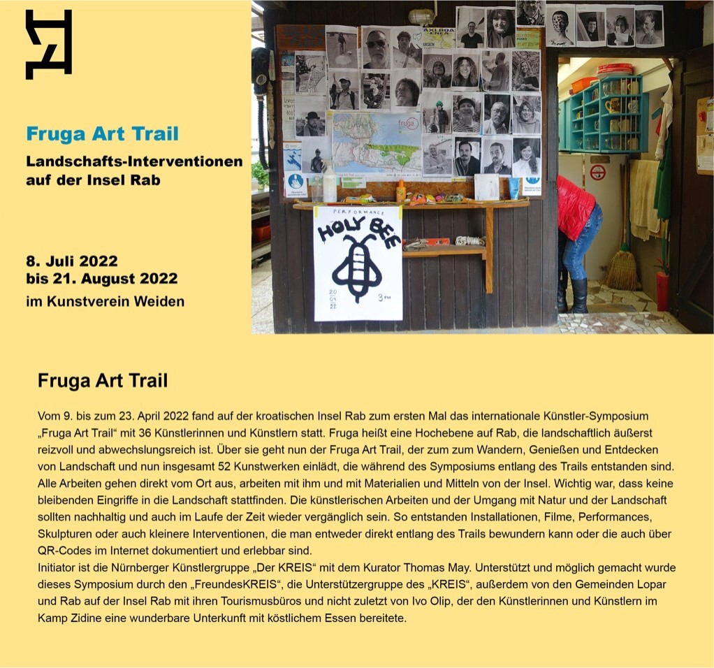 Vom 9. bis zum 23. April 2022 fand auf der kroatischen Insel Rab zum ersten Mal das internationale Künstler-Symposium „Fruga Art Trail“ mit 36 Künstlerinnen und Künstlern statt.