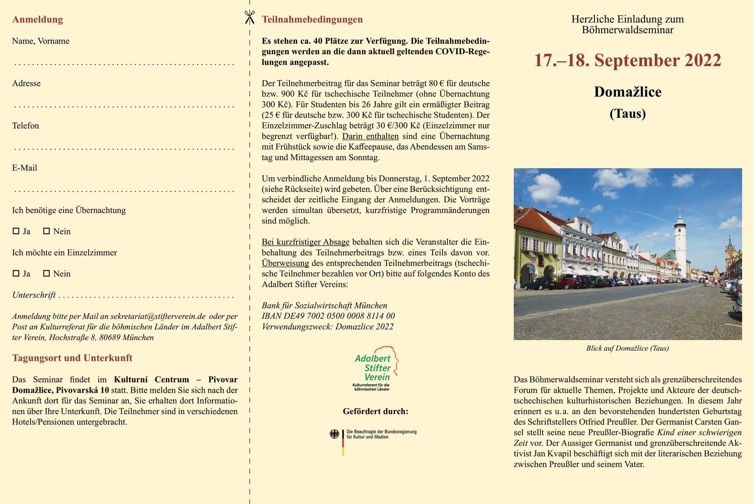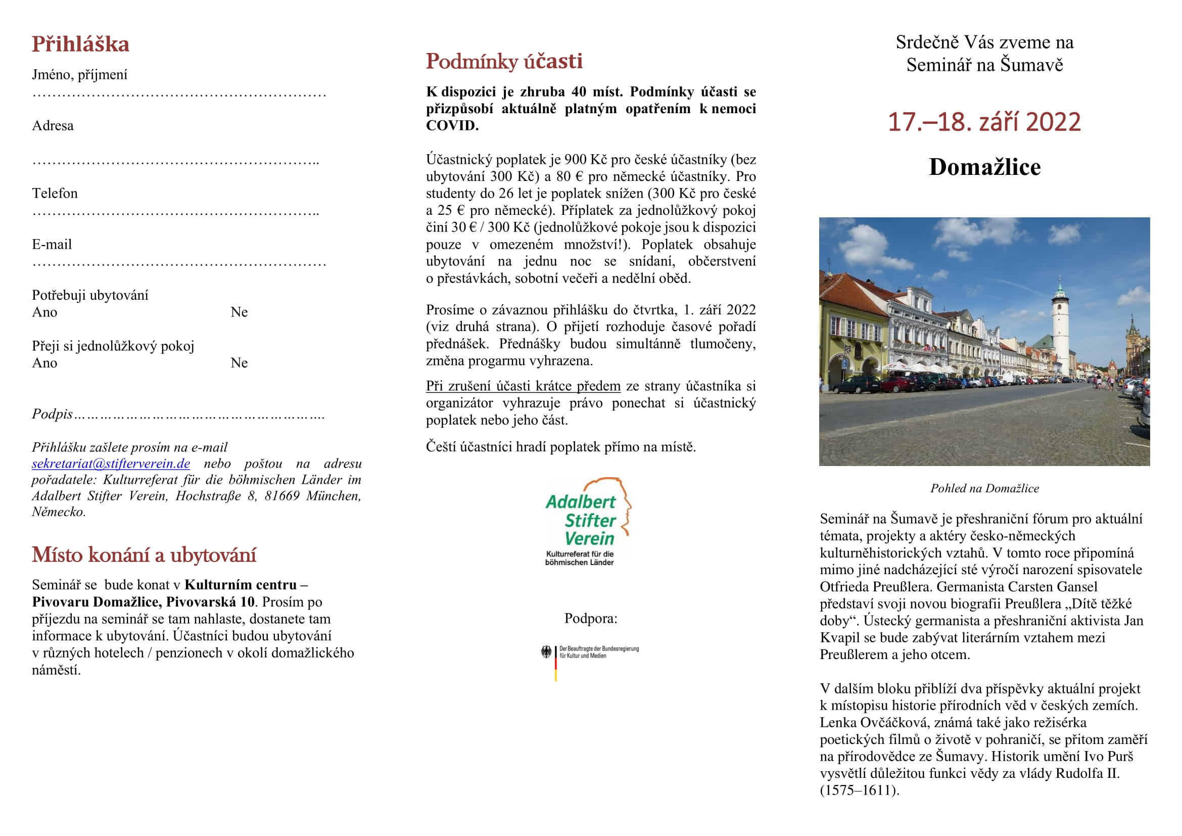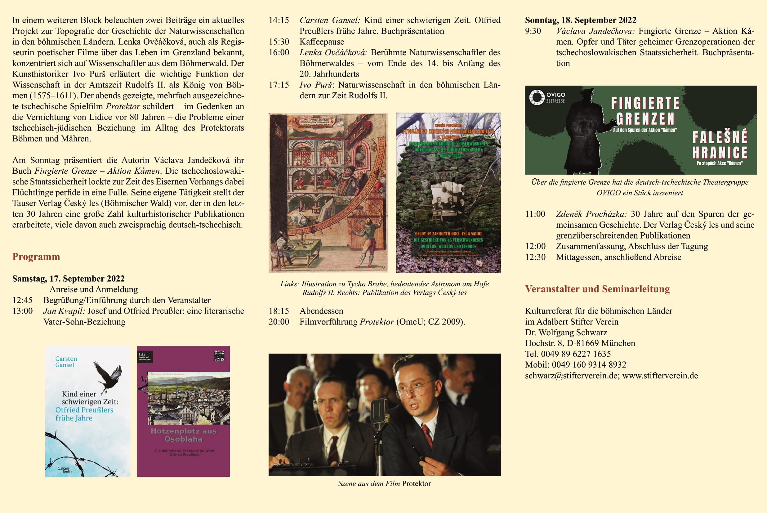 Forum für aktuelle Themen, Projekte und Akteure der deutschtschechischen kulturhistorischen Beziehungen. In diesem Jahr erinnert es u. a. an den bevorstehenden hundertsten Geburtstag des Schriftstellers Otfried Preußler. Der Germanist Carsten Gansel stellt seine neue Preußler-Biografi e Kind einer schwierigen Zeit vor. Der Aussiger Germanist und grenzüberschreitende Aktivist Jan Kvapil beschäftigt sich mit der literarischen Beziehung zwischen Preußler und seinem Vater.