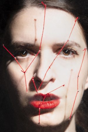 Als konzeptionelle Multimediakünstlerin weiß Karima Al-Mukhtar, dass ihre Arbeit dort am wirkungsvollsten ist, wo sich fesselnde Geschichten erzählen lassen. Wie ein charakteristischer dünner roter Faden, der sich buchstäblich und symbolisch durch ihr Werk zieht, ist der Wunsch, den Keim dieser Erzählung einzufangen. Ihre kunstvolle Betonung der traditionellen Handwerkskunst in einer Zeit, in der ähnliche Handwerke aussterben, soll die Zeit, die für eine solche Erzählung wesentlich ist, auf gewaltfreie Weise gegenwärtig machen. In dieser Offenbarung der Zerbrechlichkeit der Zeit erinnert sie an die berühmte Penélope, die Frau des Odysseus, die in dem Moment in den Mittelpunkt der Geschichte rückt, als sie sich von ihrem Mann trennen und in seiner Abwesenheit einen neuen Ehemann wählen soll. Penélope willigt unter der Bedingung ein, dass dies erst geschieht, wenn sie das Leichentuch für Odysseus’ Vater Laertes fertiggestellt hat. Doch was sie tagsüber webt, reißt sie nachts auseinander. Penélope stiehlt die Zeit mit ihrer endlosen Näherei. Auch Karima Al-Mukhtars rhythmisch und körperlich detailliertes Werk stiehlt ihm die Schau, aber es entbehrt nicht der Souveränität einer expressiven Geste, die verstörend ehrlich ist. Ihre großformatigen Fotografien ihrer selbst genähten Handflächen, die mit kurzen Botschaften beschriftet sind und darauf warten, wieder aufgenäht zu werden, dominieren die Ausstellung ebenso wie das Leichentuch von Laertes. Im Dialog mit dem empfindsamen Körper stehen die dominierenden Objekte aus Glasscheiben mit Hunderten von Löchern, die mit farbigen Fäden verwoben sind. Einerseits eine Aufzeichnung von Miniaturwunden in der Handfläche, andererseits die unglaubliche Zerbrechlichkeit von transparentem Glas.