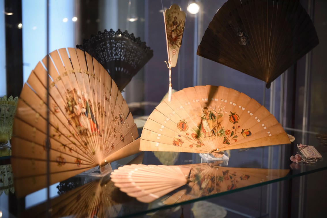 Präsentiert werden sowohl Fächer der Luxusmarke als auch die üblicheren, die sogenannten Faltfächer. Es gibt auch mehrere Muster von Patentkonstruktionen aus der zweiten Hälfte des 19. Jahrhunderts oder Federfächer in verschiedenen Farbvarianten. Die Ausstellung umfasst auch unverzichtbare Damenaccessoires, also Handtaschen, Tanzaccessiores, Toilettenartikel, Hutnadeln oder Puderdosen.