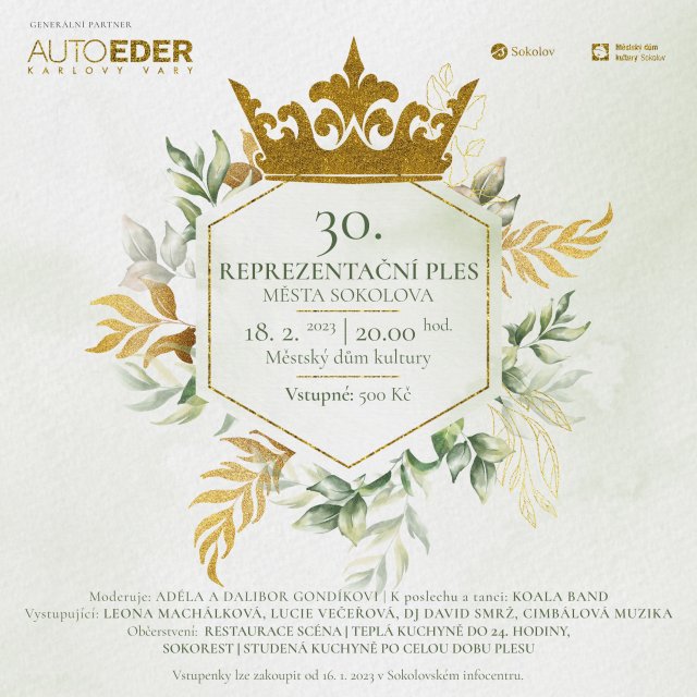 Das städtische Kulturhaus von Sokolov wird in Gold und Grün gehüllt sein, was die mit der Farbe der Stadt verbundene Raffinesse symbolisiert. Wer sonst sollte den ganzen Abend begleiten als das Sokolov-Starpaar Adéla und Dalibor Gondík.