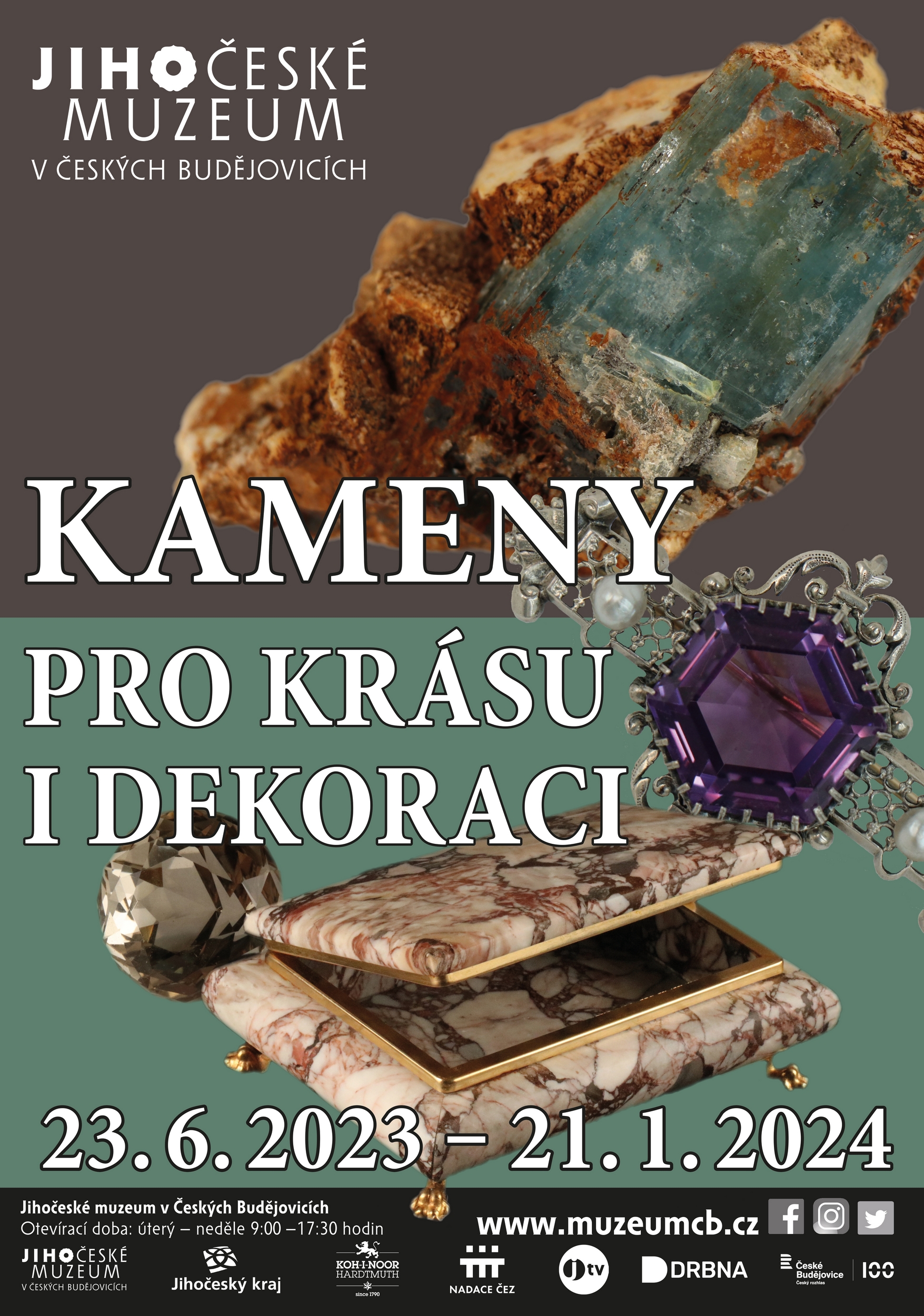 Die Ausstellung stellt die Welt der Edelsteine anhand von Schmuck, dekorativen Objekten oder angewandter Kunst vor und präsentiert auch Beispiele von natürlichen Gesteinen und Mineralien aus den Sammlungen des Südböhmischen Museums.