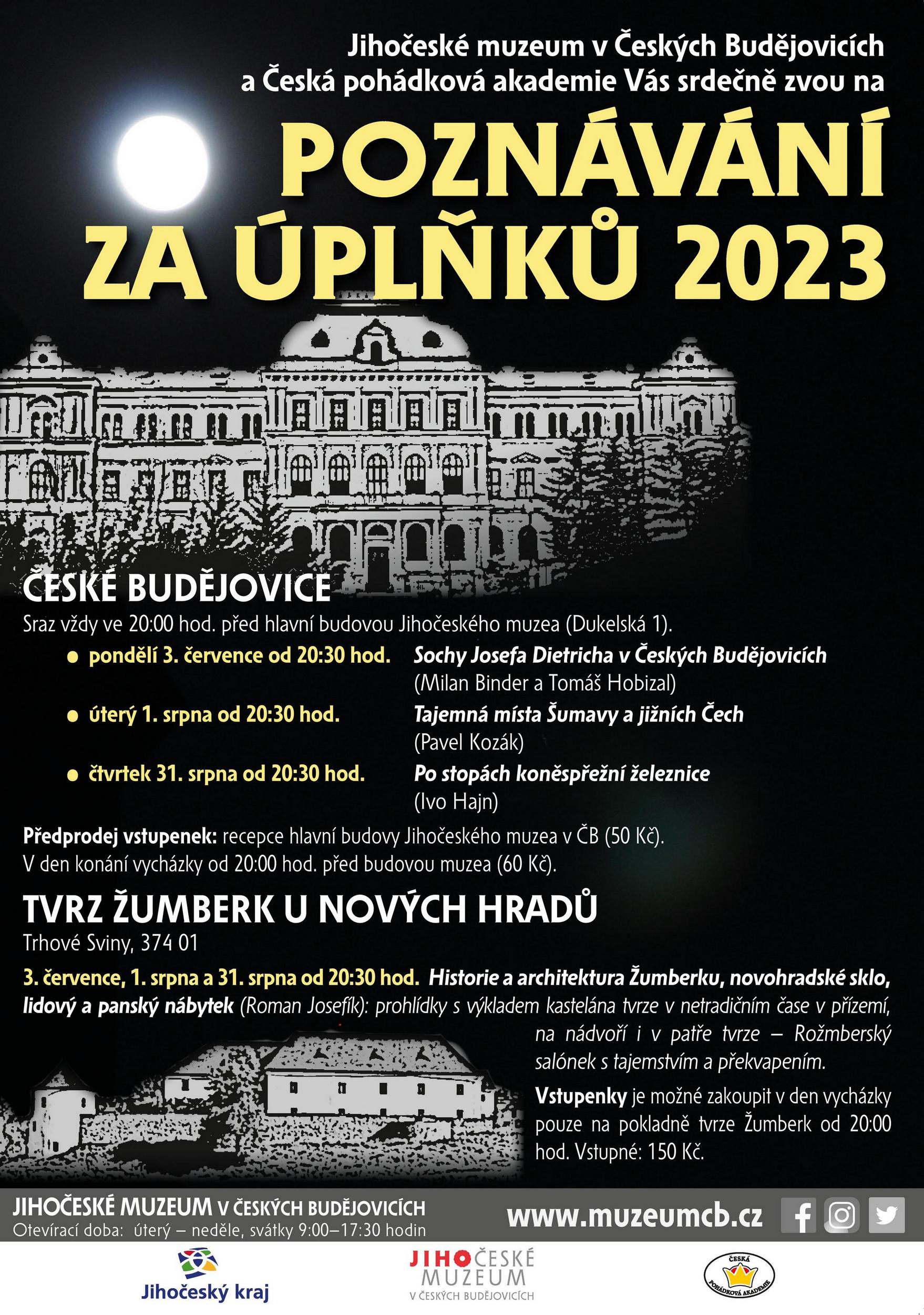 Das Südböhmische Museum und Die Tschechische Märchenakademie laden Sie herzlich zum nächsten Jahrgang der Veranstaltung Kennenlernen bei Vollmonden. Freuen Sie sich auf abendliche Sommerspaziergänge mit Führern, die Ihnen attraktive Themen rund um die Stadt- und Festungsgeschichte im Böhmischen Budweis und auf der Festung Žumberk bei Nové Hrady vorstellen.