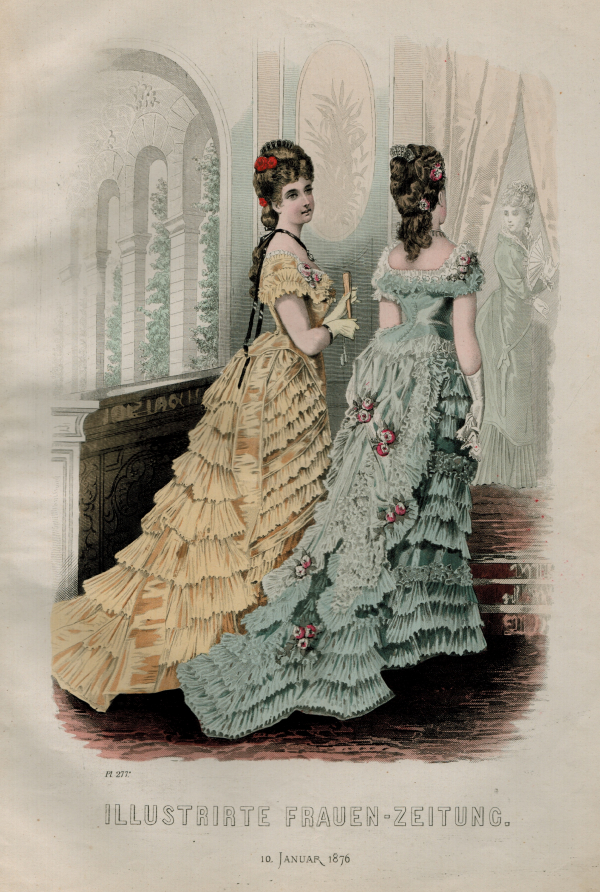 Mode von den späten 1860er bis zu den späten 1880er Jahren ist “Mode mit Tournüren”.