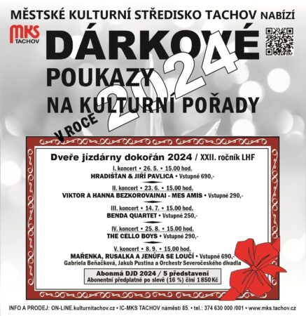 Tickets können hier erworben werden: Informationszentrum, Platz der Republik/nám. Republiky 85, Tachau * 00420 374 630 000 * infocentrum@mkstc.cz oder ab 01.12. 2023 über www.kulturnitachov.cz