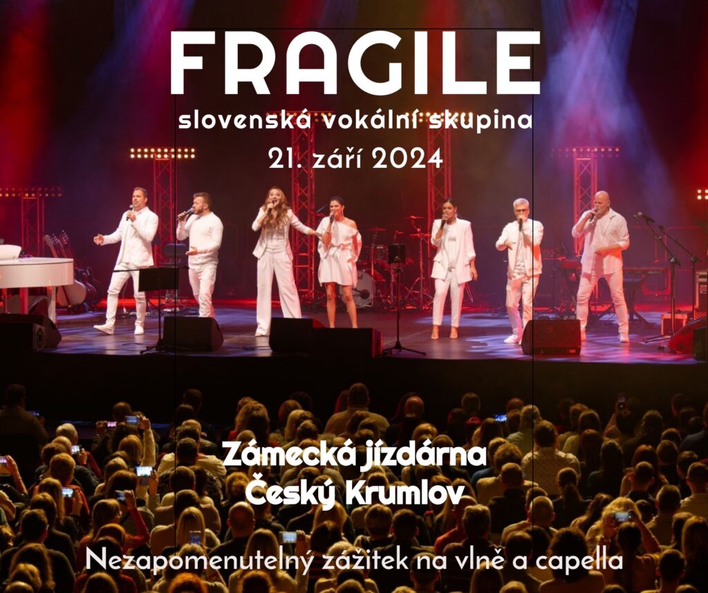 FRAGILE ist eine slowakische Vokalgruppe, die aus hervorragenden Sängerinnen und Sängern besteht, die bekannte Welthits ohne den Einsatz von Musikinstrumenten, also a cappella, vortragen. Die Konzerte von FRAGILE sind nicht nur voller hervorragender Musik, sondern auch voller fesselndem Humor, der Ihnen einen unvergesslichen Abend mit viel Spaß bescheren wird.