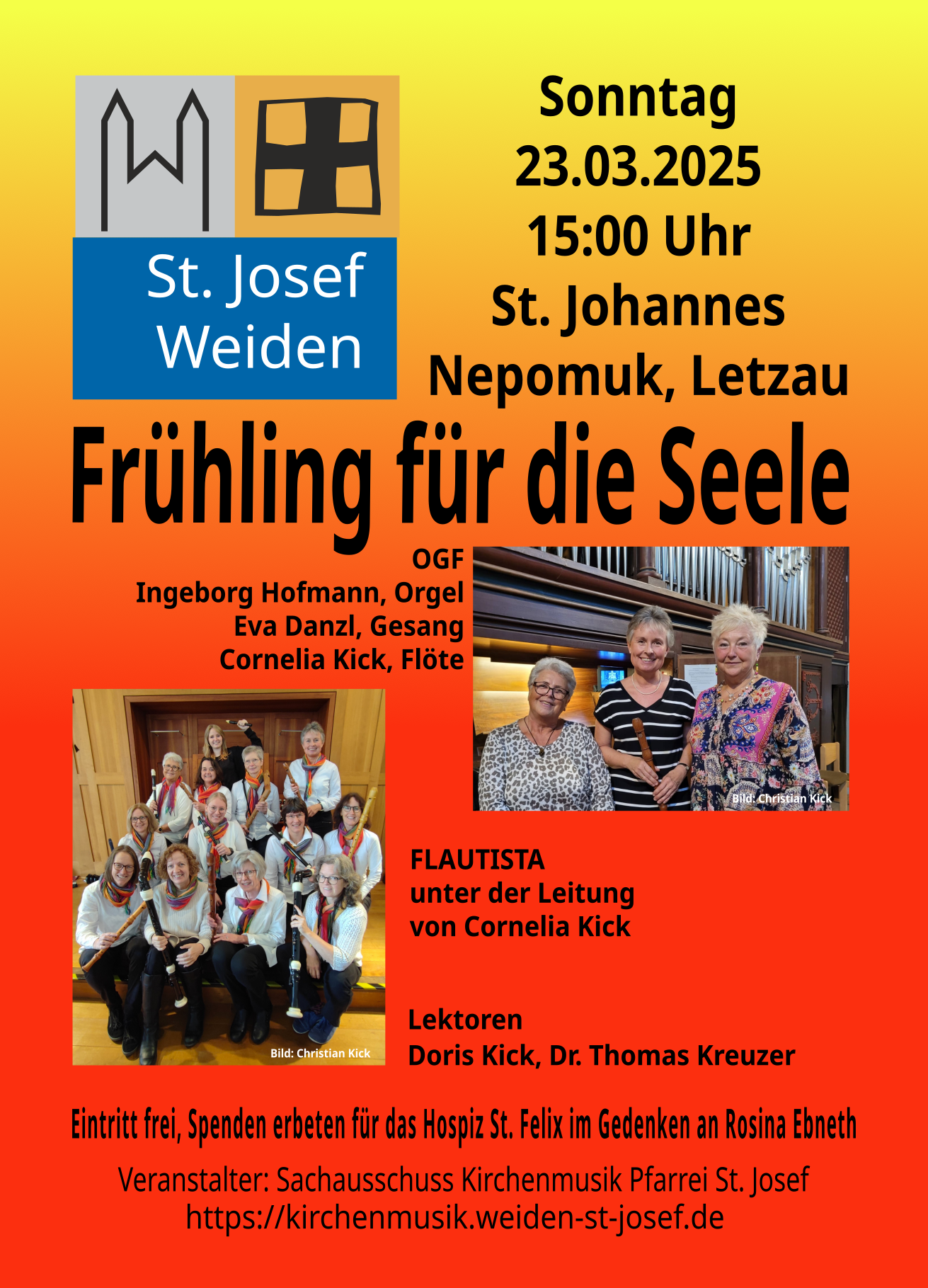 Der Eintritt ist frei, Spenden erbeten für das Hospiz St. Felix im Gedenken an Rosina Ebneth