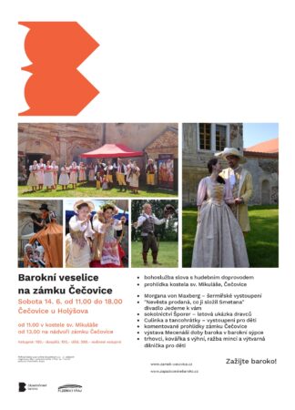 Gottesdienst in der St.-Nikolaus-Kirche in Čečovice um 11 Uhr. Besichtigung der Kirche. Ab 13 Uhr im Innenhof des Schlosses Čečovice: Schwertkampfvorführung. Theaterstück „Die verkaufte Braut“ von Smetana. Falknerei Šporer – Flugvorführung von Raubvögeln. Culinka tancohrátky (Tanzspiele). Führungen durch das Schloss Čečovice. In der barocken Kornkammer Ausstellung „Mäzene der Barockzeit“. Marktleute, Schmiedin mit Schmiedefeuer, Bastelworkshops für Kinder.