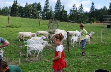 …sondern mit verschiedenen, vom Aussterben bedrohte Haustierrassen. So findet man das seltene Höhenrotvieh in Mutterkuhhaltung, das Waldschaf, böhmische Weißgänse, Goldsprenkelhühner sowie original Saatenziegen. Schwarmbienen mit ihren Ablegern sowie Legehennen, Hunde,…